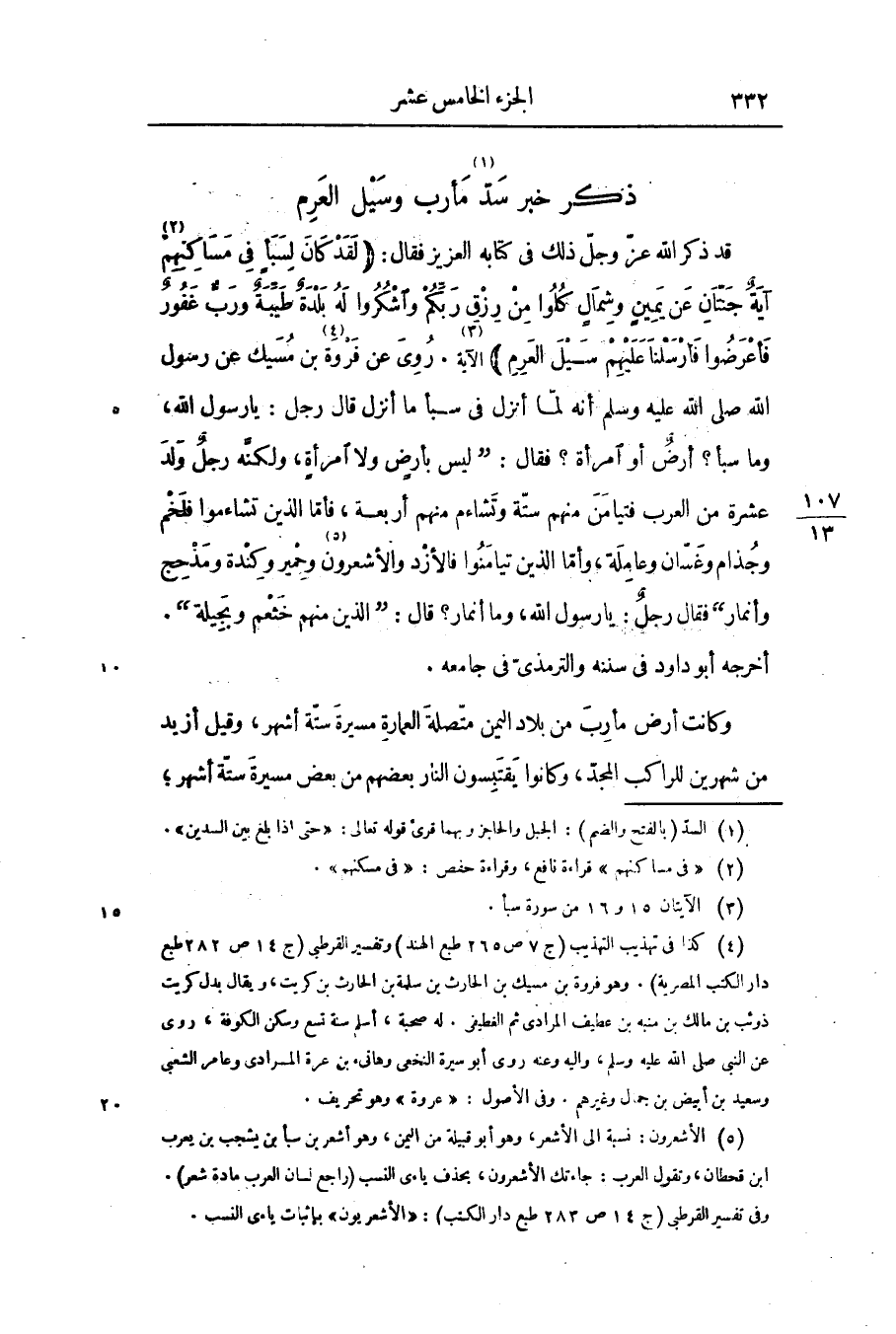 قد ذكر الله عزّ وجلّ ذلك فى كتابه العزيز فقال: (لَقَدْ كانَ لِسَبَإٍ فِي مَسْكَنِهِمْ «2» آيَةٌ جَنَّتانِ عَنْ يَمِينٍ وَشِمالٍ كُلُوا مِنْ رِزْقِ رَبِّكُمْ وَاشْكُرُوا لَهُ بَلْدَةٌ طَيِّبَةٌ وَرَبٌّ غَفُورٌ فَأَعْرَضُوا فَأَرْسَلْنا عَلَيْهِمْ سَيْلَ الْعَرِمِ)