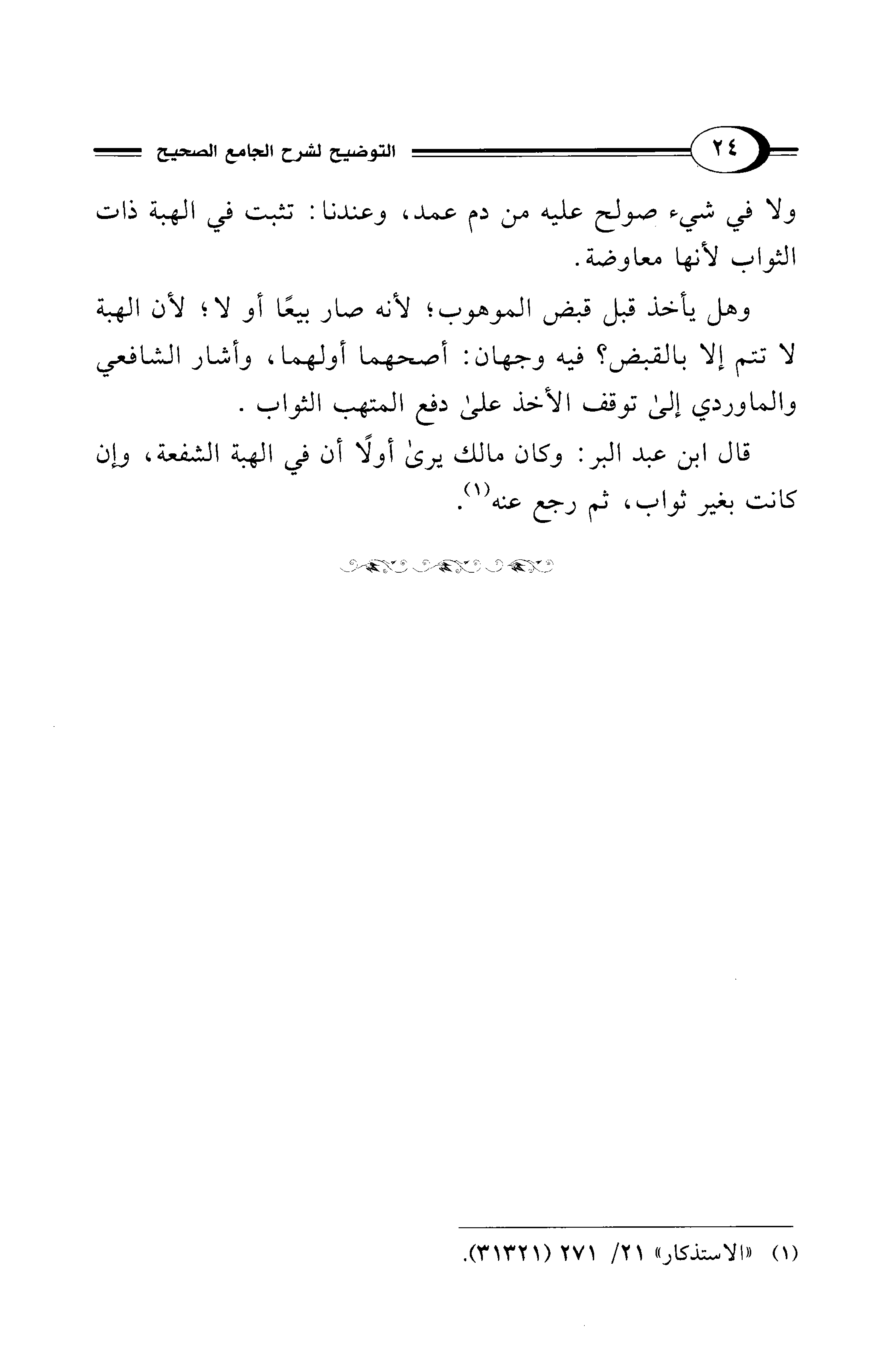 (¬1) "الاستذكار" 21/ 271 (31321).