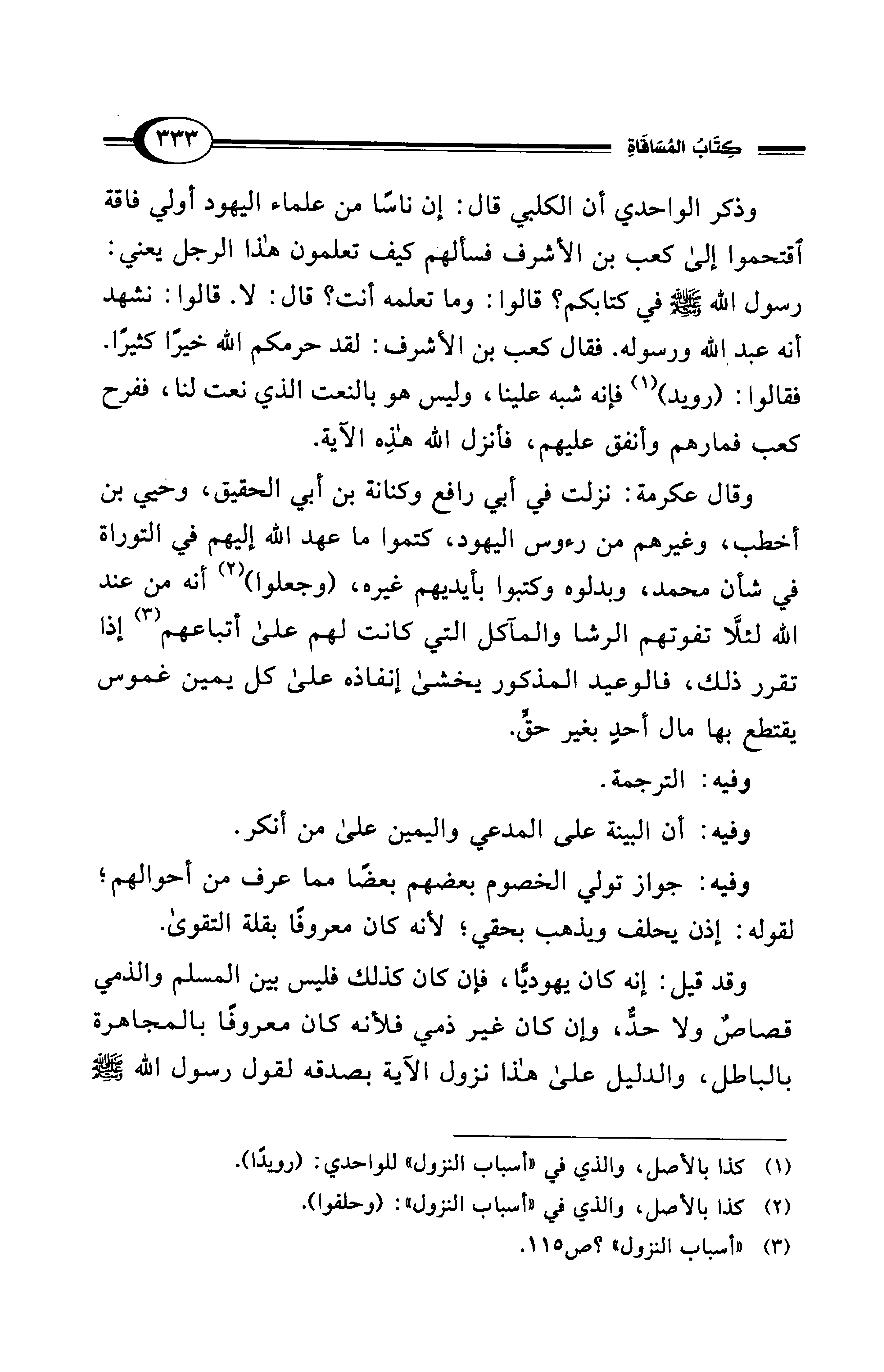 وذكر الواحدي أن الكلبي قال: إن ناسًا من علماء اليهود أولي فاقة اقتحموا إلى كعب بن الأشرف فسألهم كيف تعلمون هذا الرجل يعني: رسول الله - صلى الله عليه وسلم - في كتابكم؟ قالوا: وما تعلمه أنت؟ قال: لا. قالوا: نشهد أنه عبد الله ورسوله. فقال كعب بن الأشرف: لقد حرمكم الله خيرًا كثيرًا. فقالوا: (رويد) (¬1) فإنه شبه علينا، وليس هو بالنعت الذي نعت لنا، ففرح كعب فمارهم وأنفق عليهم، فأنزل الله هذِه الآية.