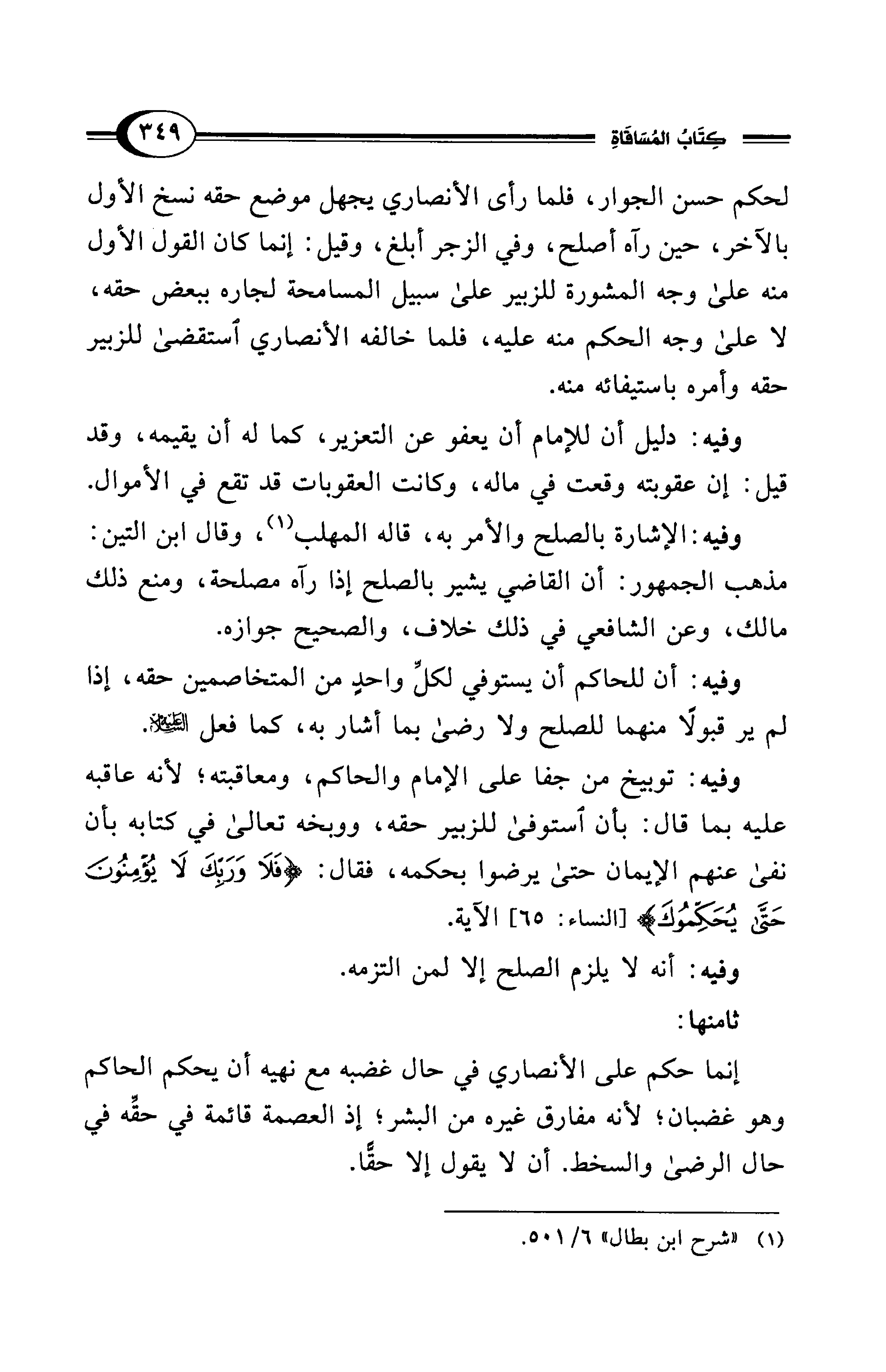 وفيه: توبيخ من جفا على الإمام والحاكم، ومعاقبته؛ لأنه عاقبه عليه بما قال: بأن استوفى للزبير حقه، ووبخه تعالى في كتابه بأن نفي عنهم الإيمان حتى يرضوا بحكمه، فقال: {فَلَا وَرَبِّكَ لَا يُؤْمِنُونَ حَتَّى يُحَكِّمُوكَ} [النساء: 65] الآية.