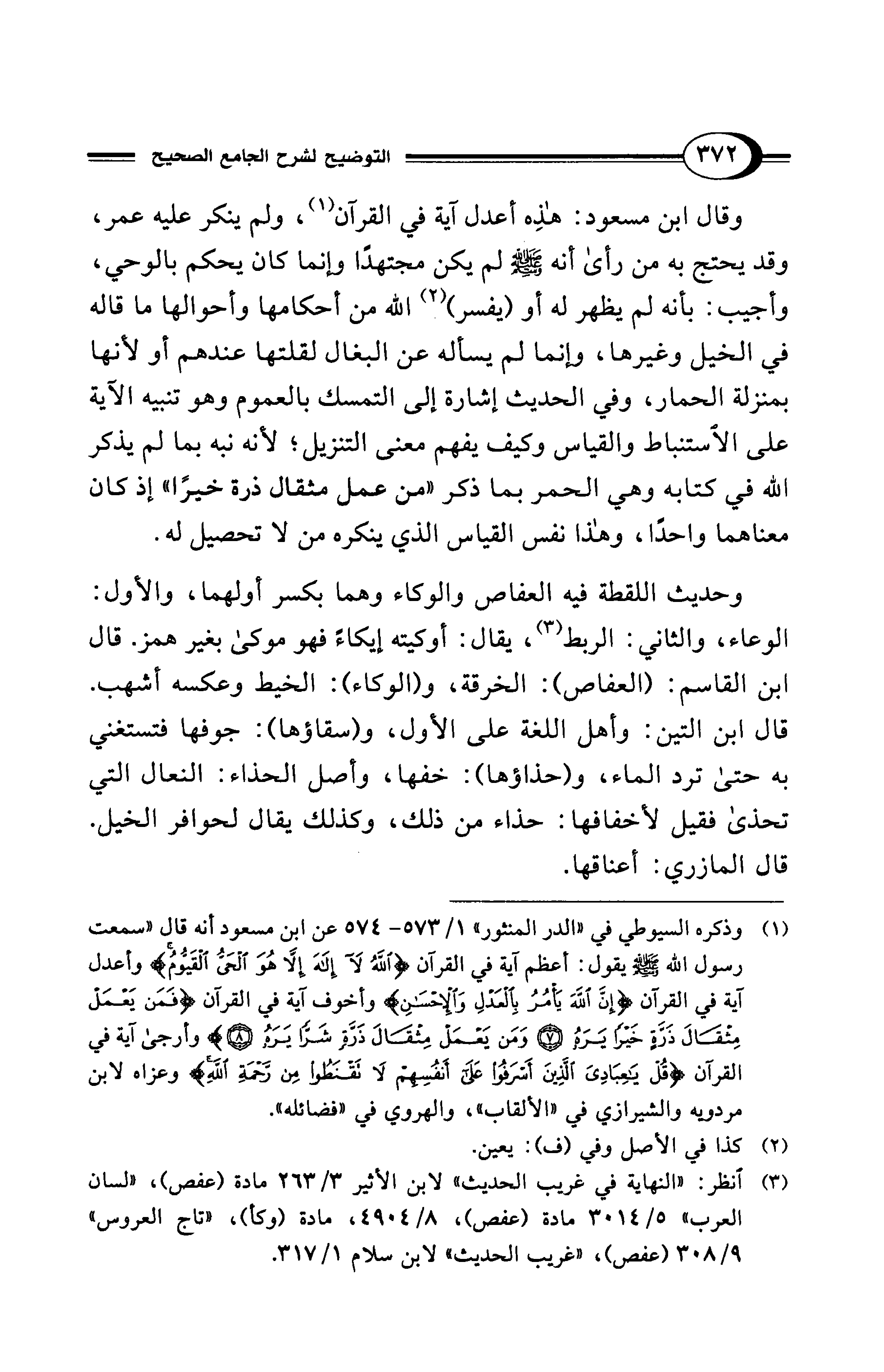 (¬3) انظر: "النهاية في غريب الحديث" لابن الأثير 3/ 263 مادة (عفص)، "لسان العرب" 5/ 3014 مادة (عفص)، 8/ 4904، مادة (وكأ)، "تاج العروس" 9/ 308 (عفص)، "غريب الحديث" لابن سلام 1/ 317.