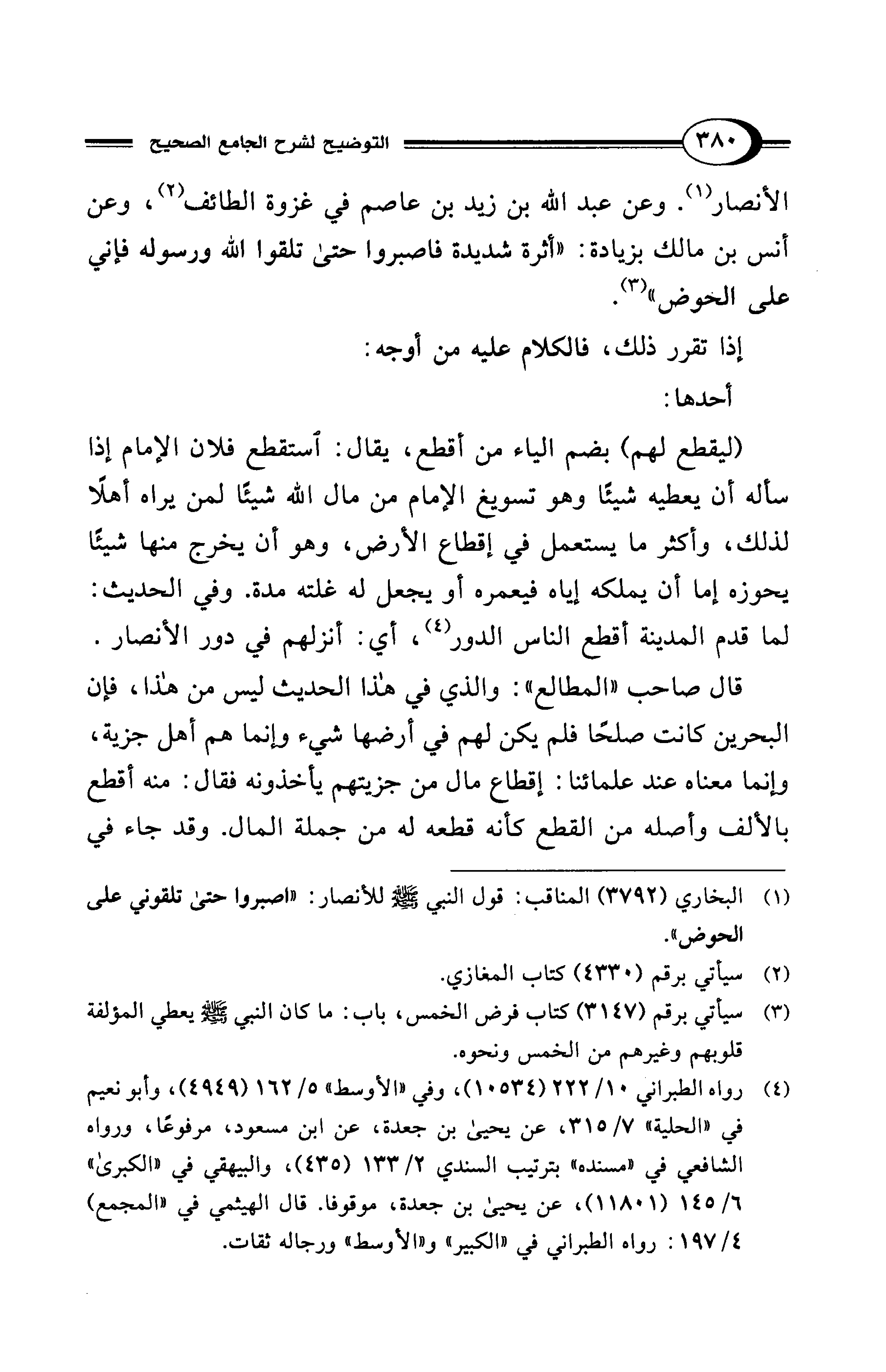 (¬1) البخاري (3792) المناقب: قول النبي - صلى الله عليه وسلم - للأنصار: "اصبروا حتى تلقوني على الحوض".