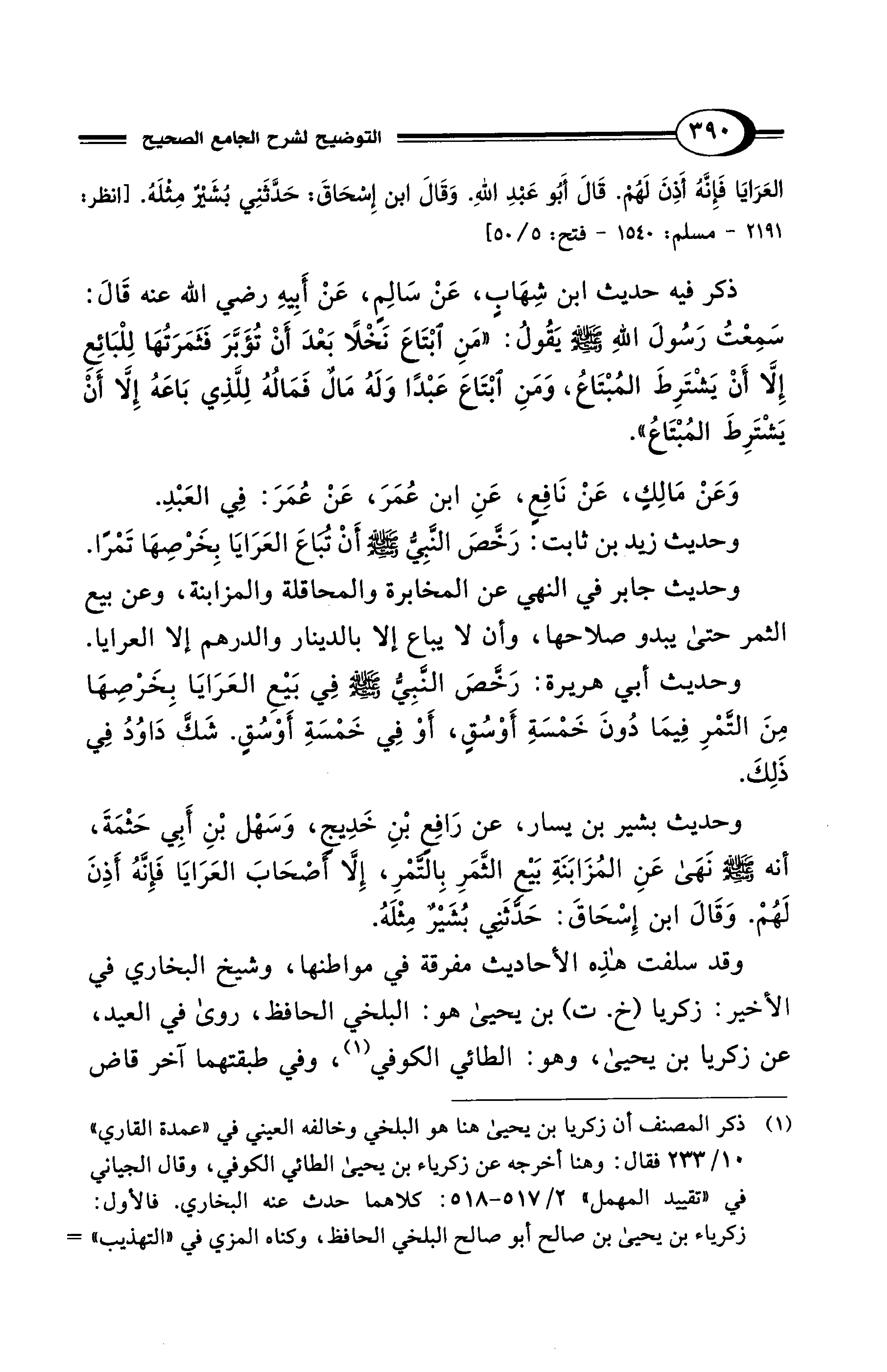 العَرَايَا فَإِنَّهُ أَذِنَ لَهُمْ. قَالَ أَبُو عَبْدِ اللهِ. وَقَالَ ابْنُ إِسْحَاقَ: حَدَّثَنِي بُشَيْرٌ مِثْلَهُ. [انظر: