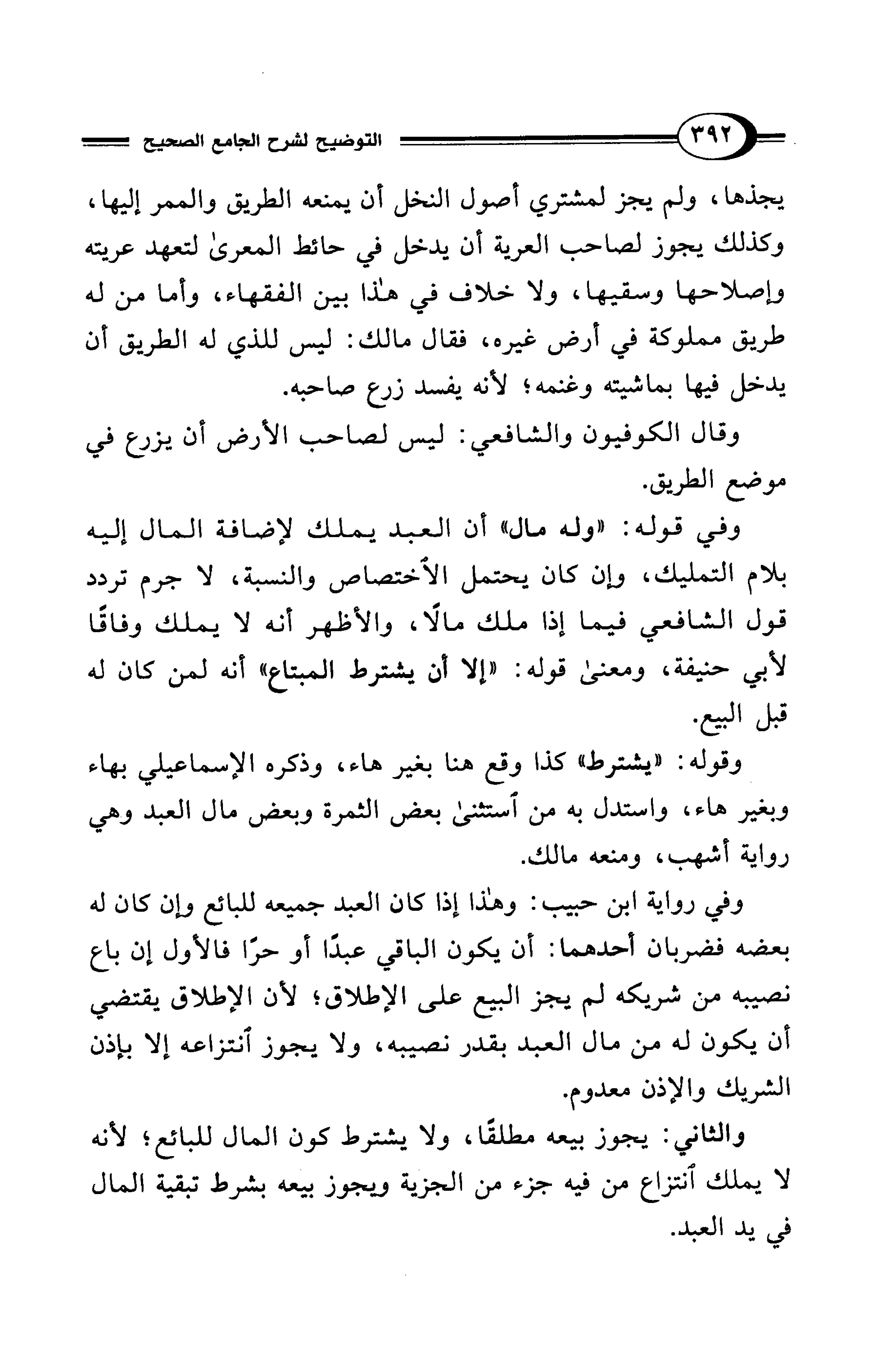 وفي رواية ابن حبيب: وهذا إذا كان العبد جميعه للبائع وإن كان له بعضه فضربان أحدهما: أن يكون الباقي عبدًا أو حرًا فالأول إن باع نصيبه من شريكه لم يجز البيع على الإطلاق؛ لأن الإطلاق يقتضي
