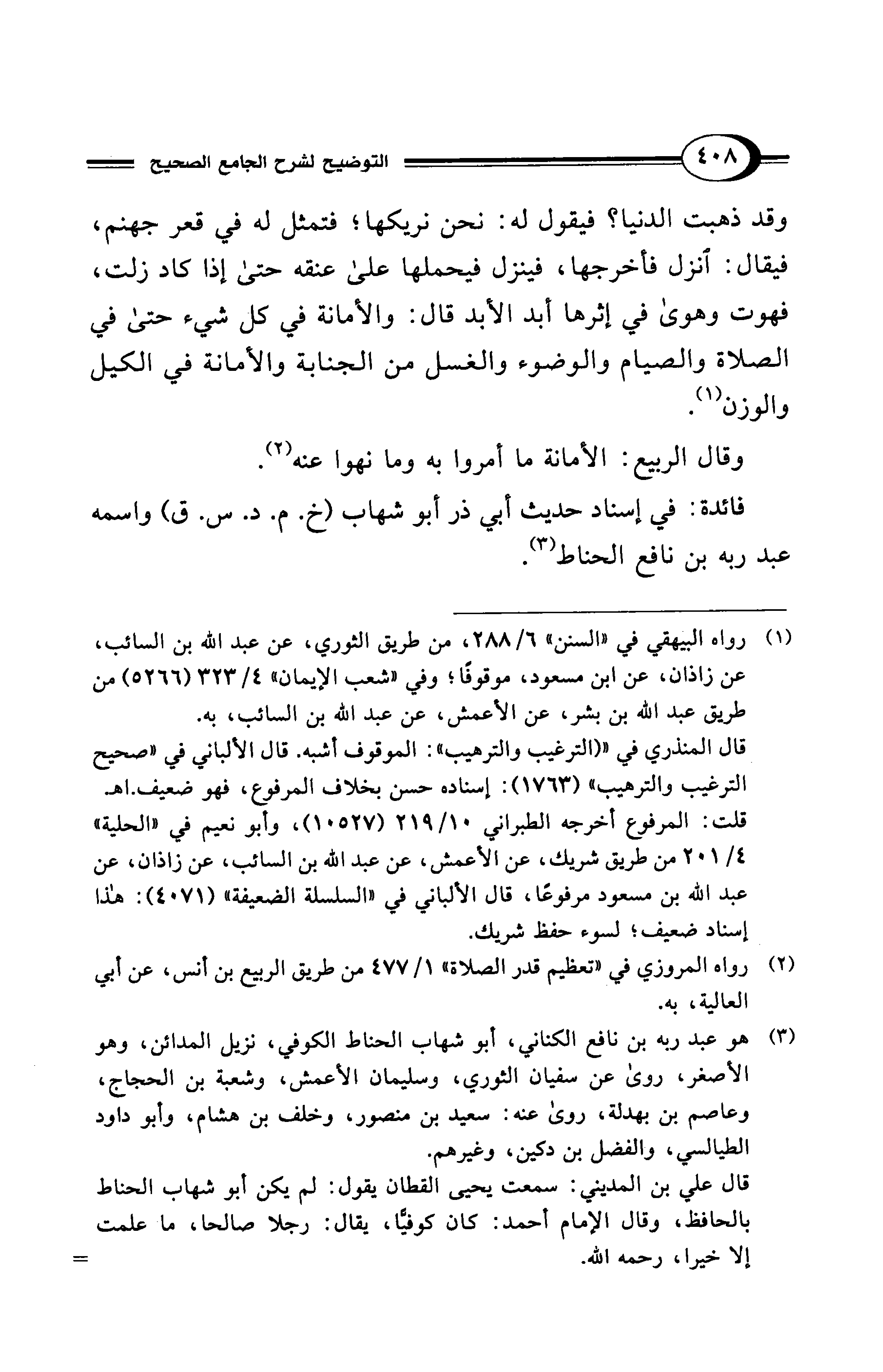 فائدة: في إسناد حديث أبي ذر أبو شهاب (خ. م. د. س. ق) واسمه عبد ربه بن نافع الحناط (¬3).