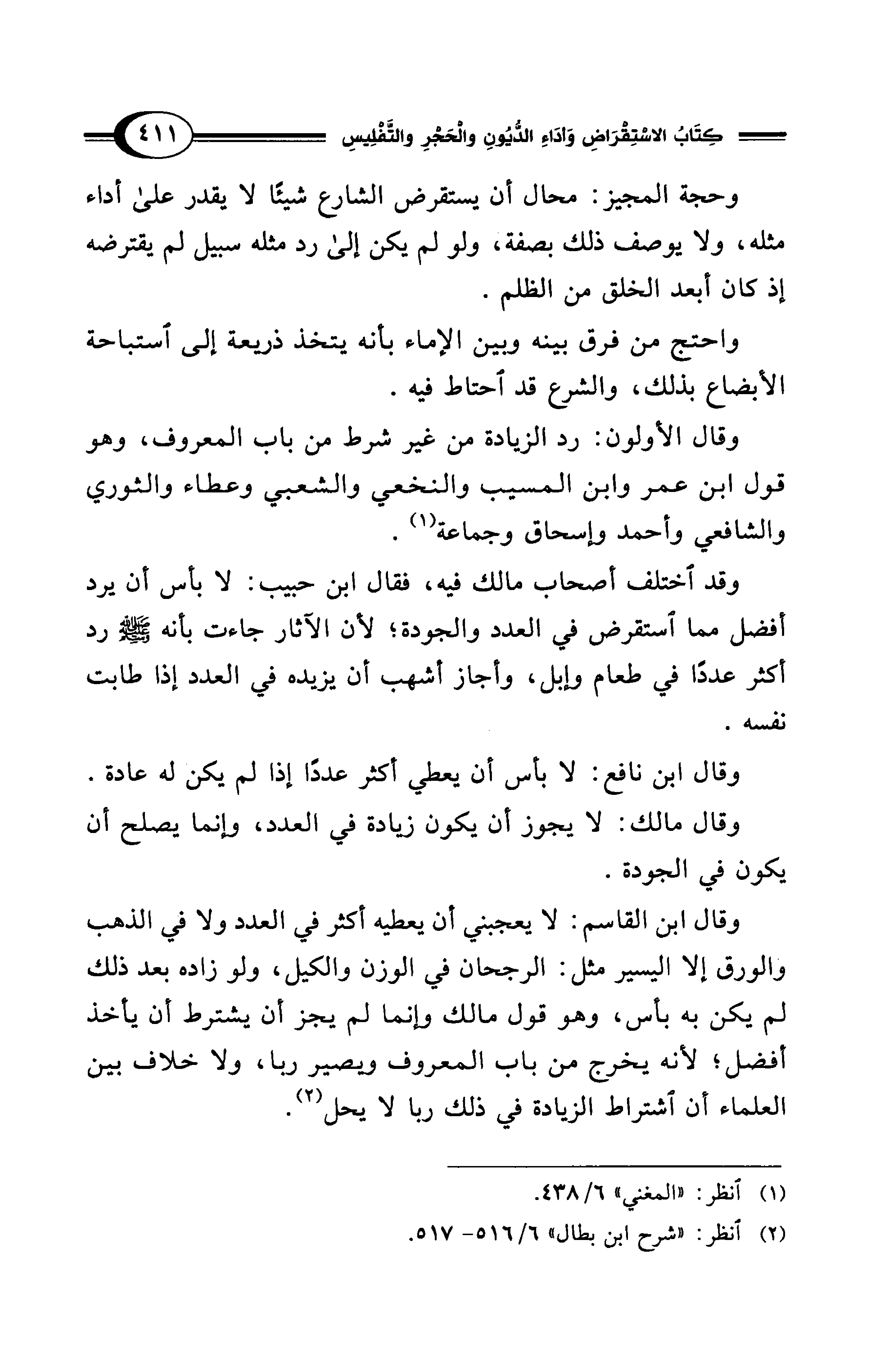 وقال الأولون: رد الزيادة من غير شرط من باب المعروف، وهو قول ابن عمر وابن المسيب والنخعي والشعبي وعطاء والثوري والشافعي وأحمد وإسحاق وجماعة (¬1).