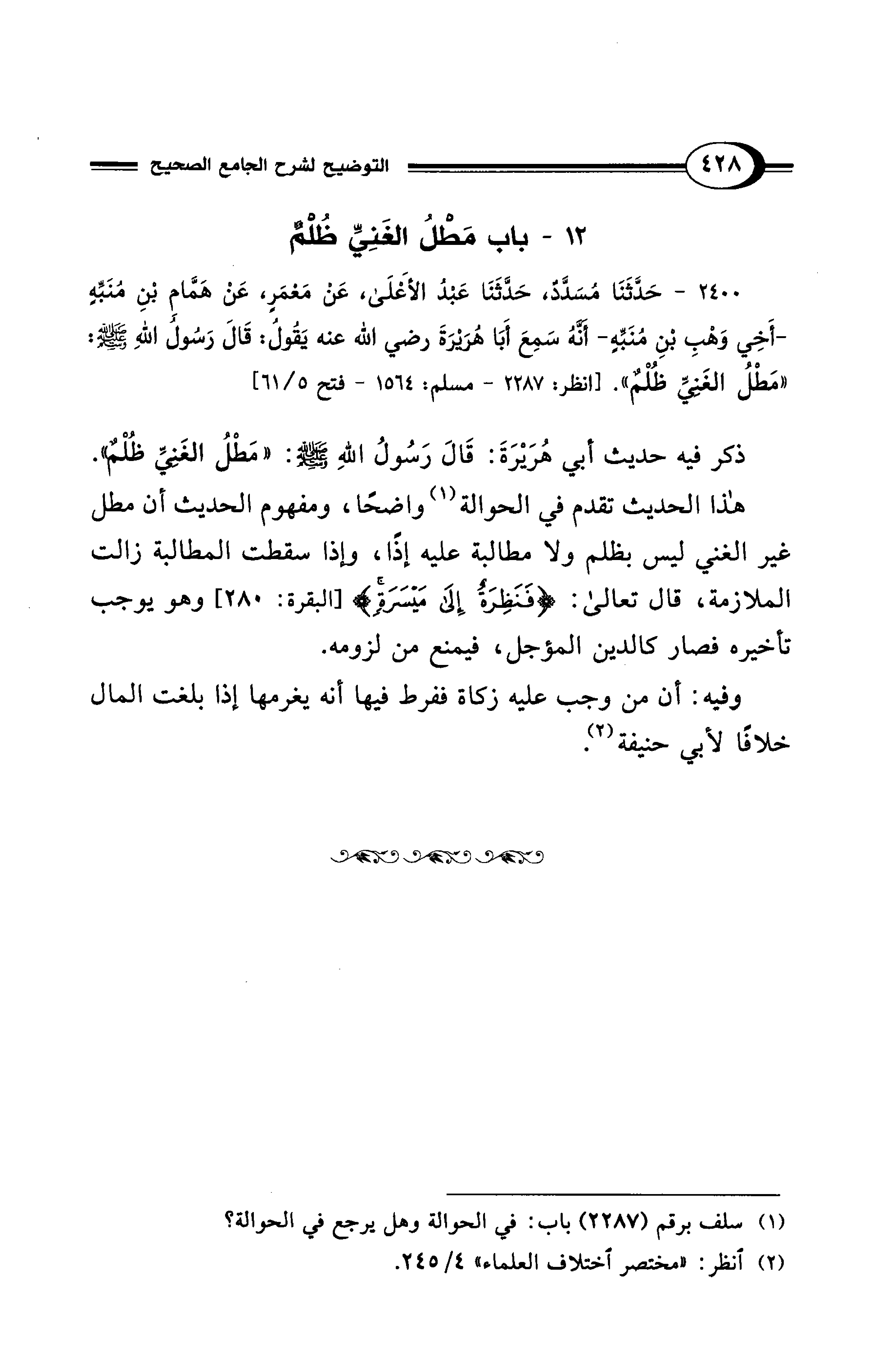 (¬1) سلف برقم (2287) باب: في الحوالة وهل يرجع في الحوالة؟