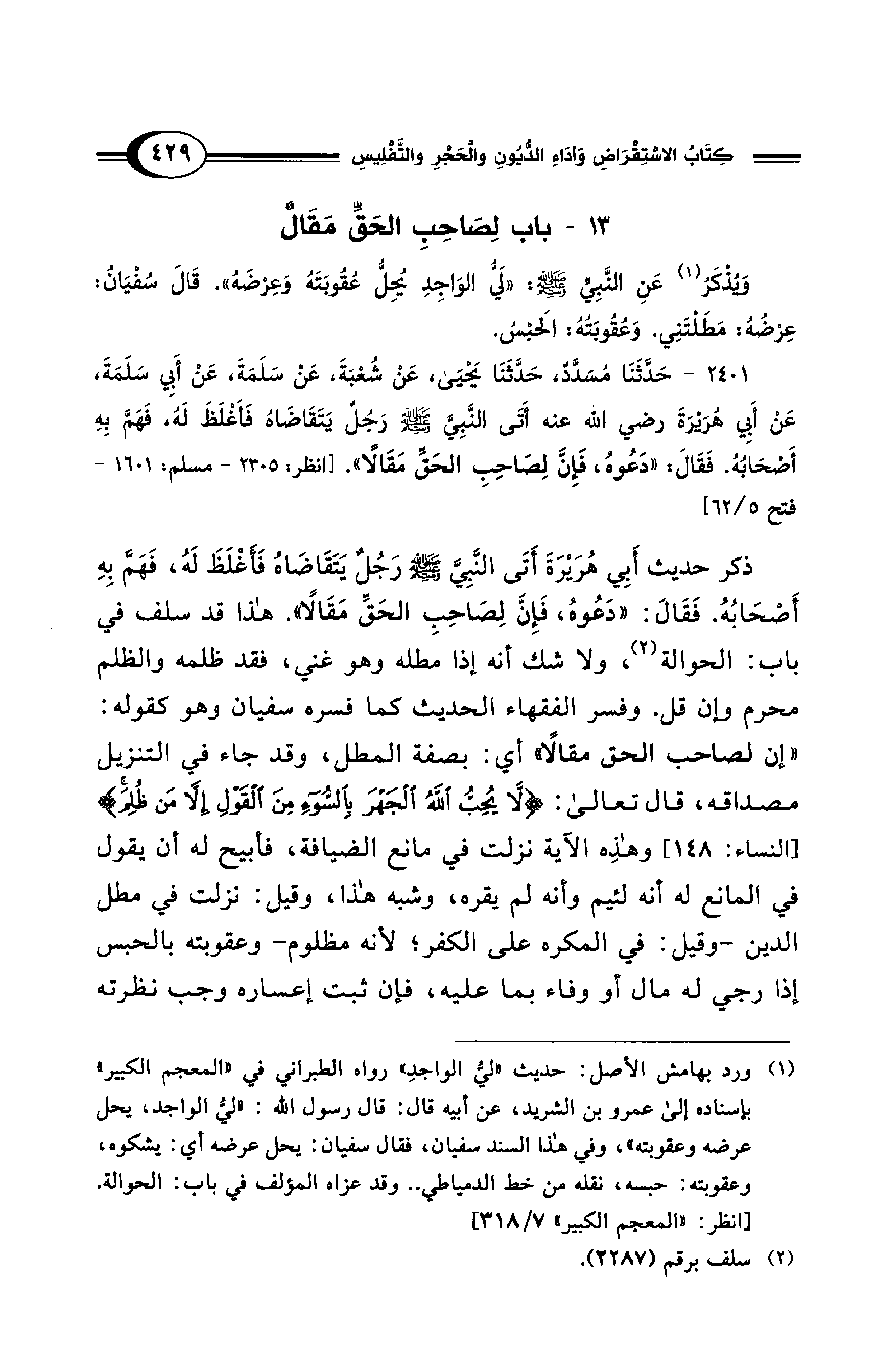 13 - باب لِصَاحِبِ الْحَقِّ مَقَالٌ