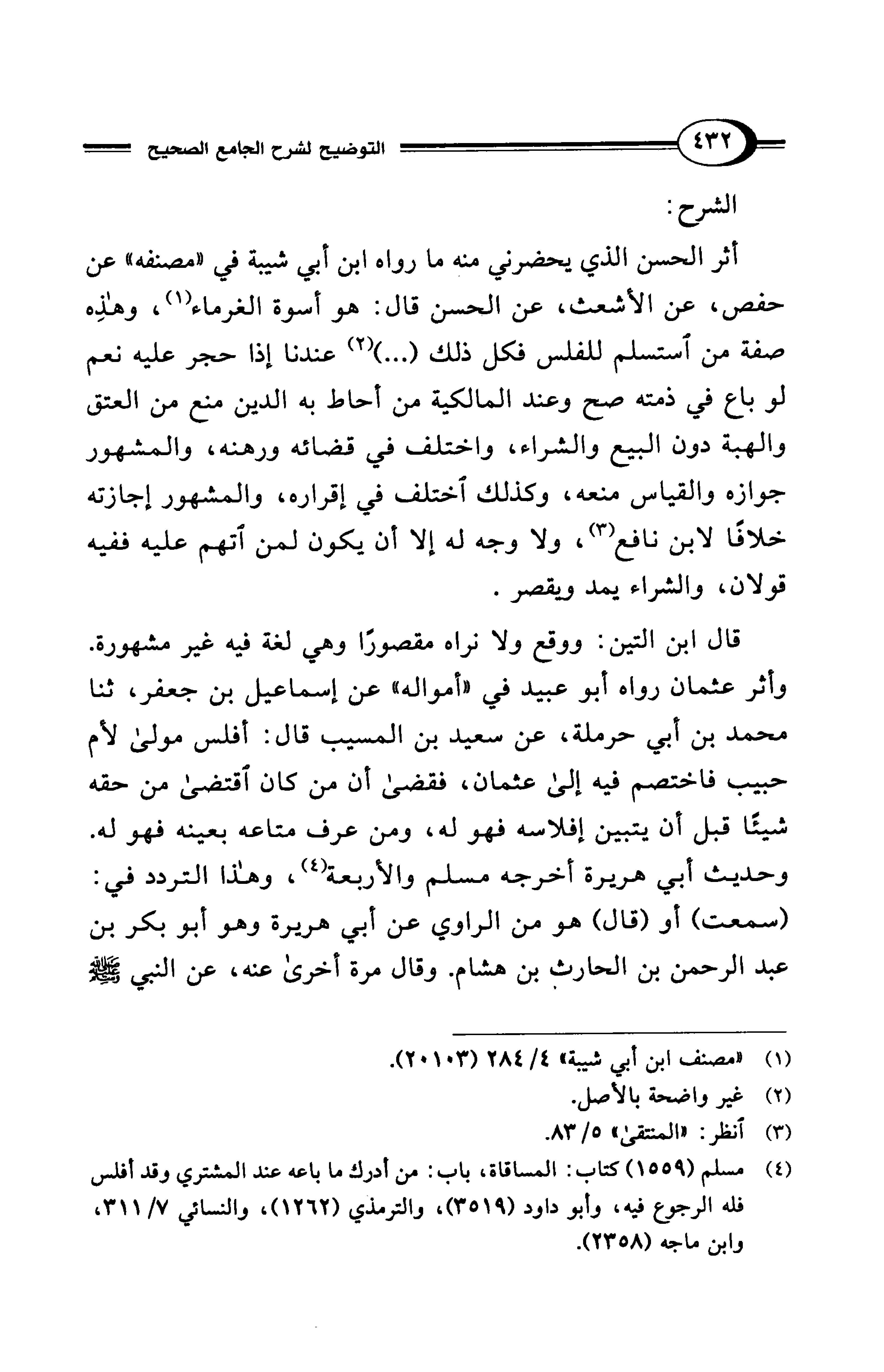 (¬4) مسلم (1559) كتاب: المساقاة، باب: من أدرك ما باعه عند المشتري وقد أفلس فله الرجوع فيه، وأبو داود (3519)، والترمذي (1262)، والنسائي 7/ 311، وابن ماجه (2358).