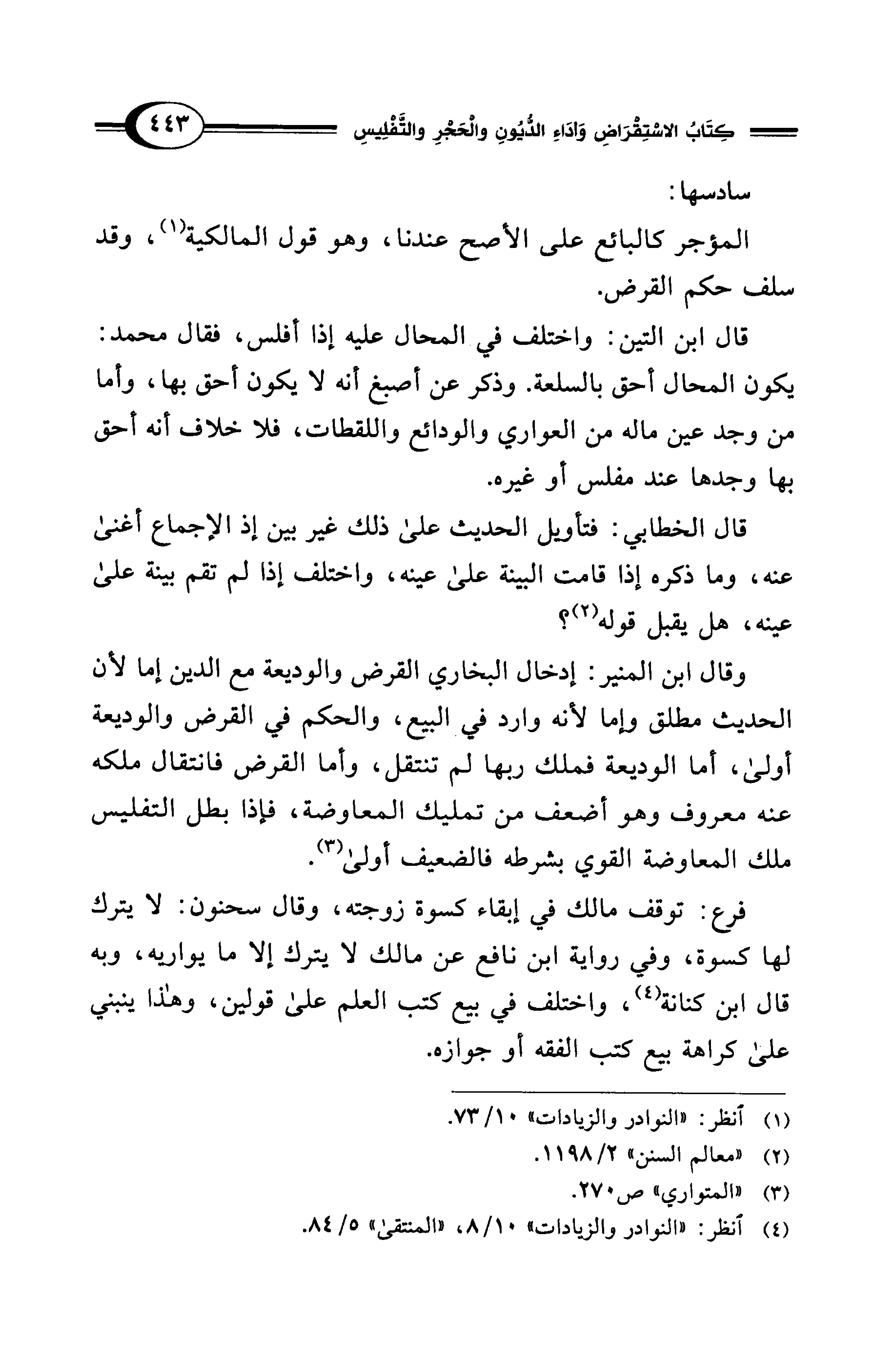 (¬4) انظر: "النوادر والزيادات" 10/ 8، "المنتقى" 5/ 84.