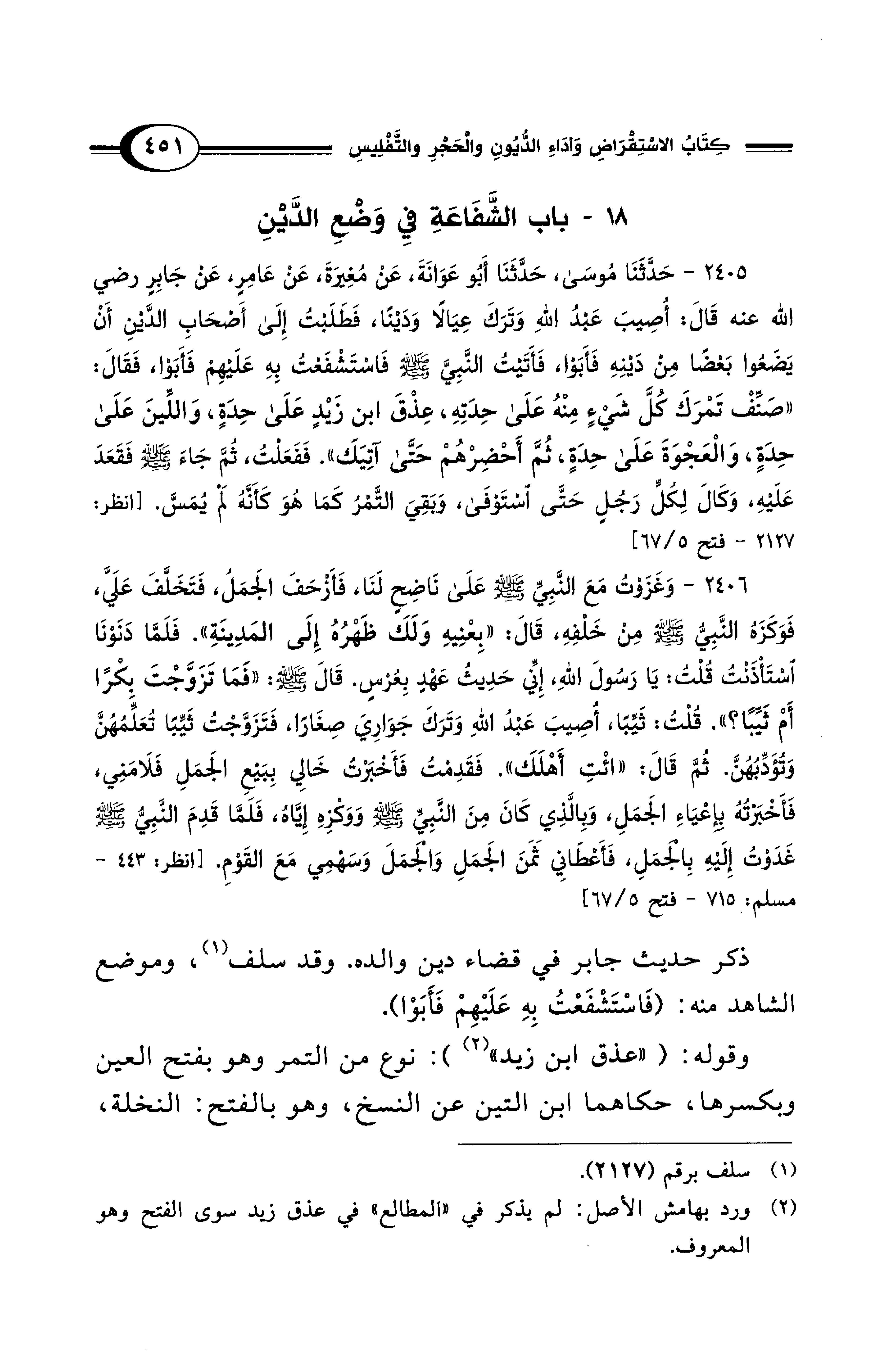 18 - باب الشَّفَاعَةِ فِي وَضْعِ الدَّيْنِ