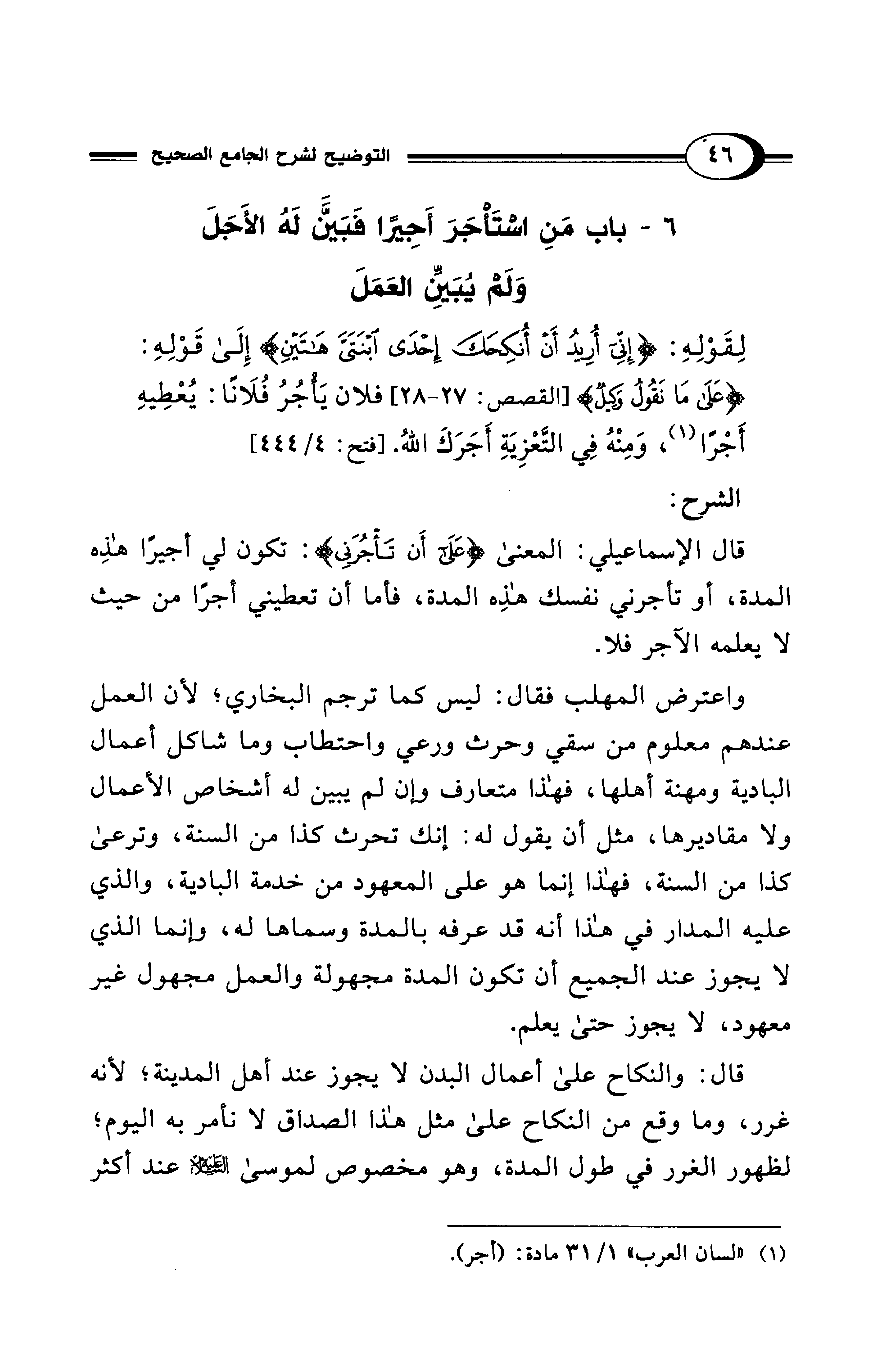 6 - باب مَنِ اسْتَأْجَرَ أَجِيرًا فَبَيَّنَ لَهُ الأَجَلَ وَلَمْ يُبَيِّنِ العَمَلَ