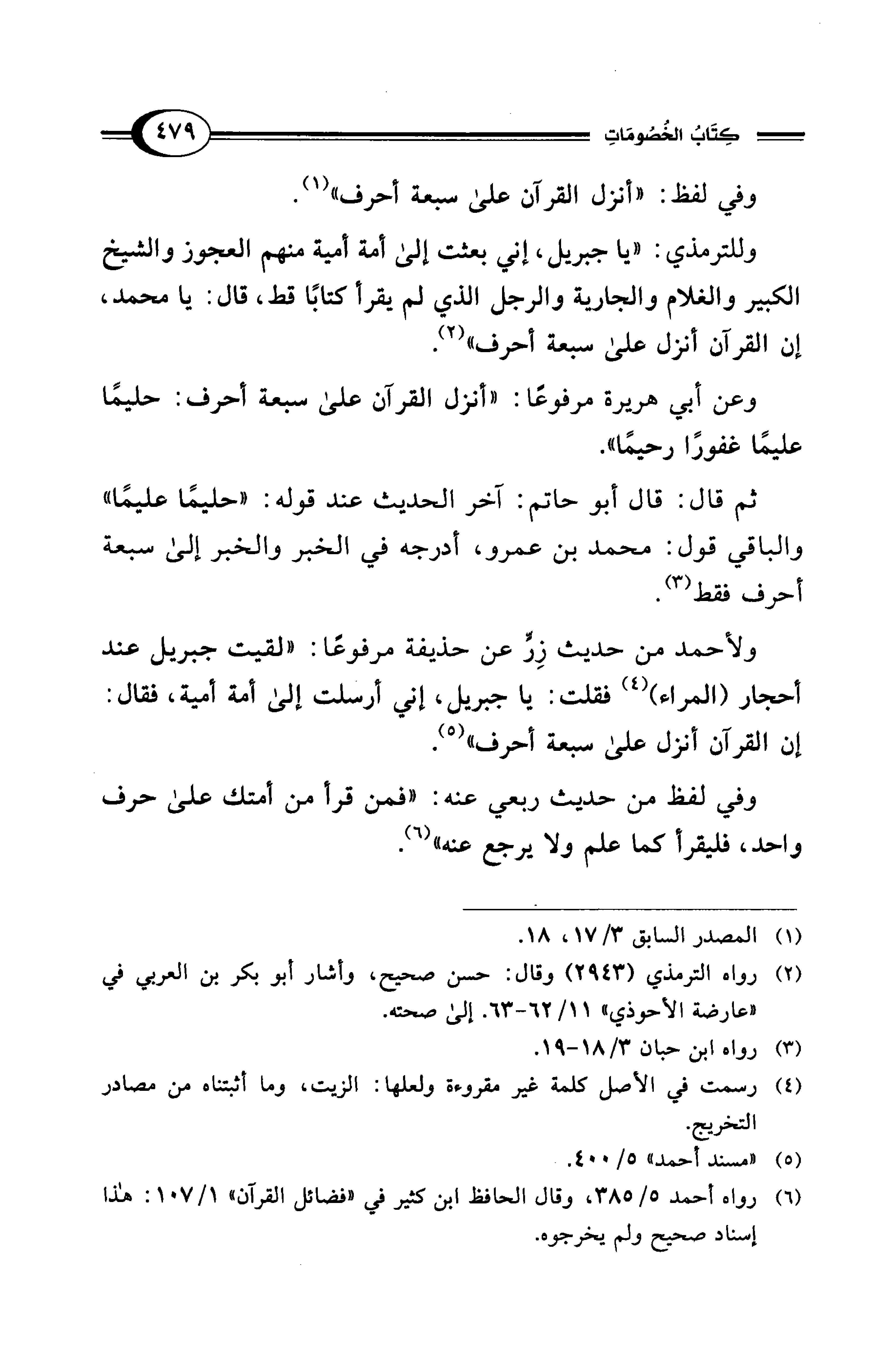 (¬6) رواه أحمد 5/ 385، وقال الحافظ ابن كثير في "فضائل القرآن" 1/ 107: هذا إسناد صحيح ولم يخرجوه.