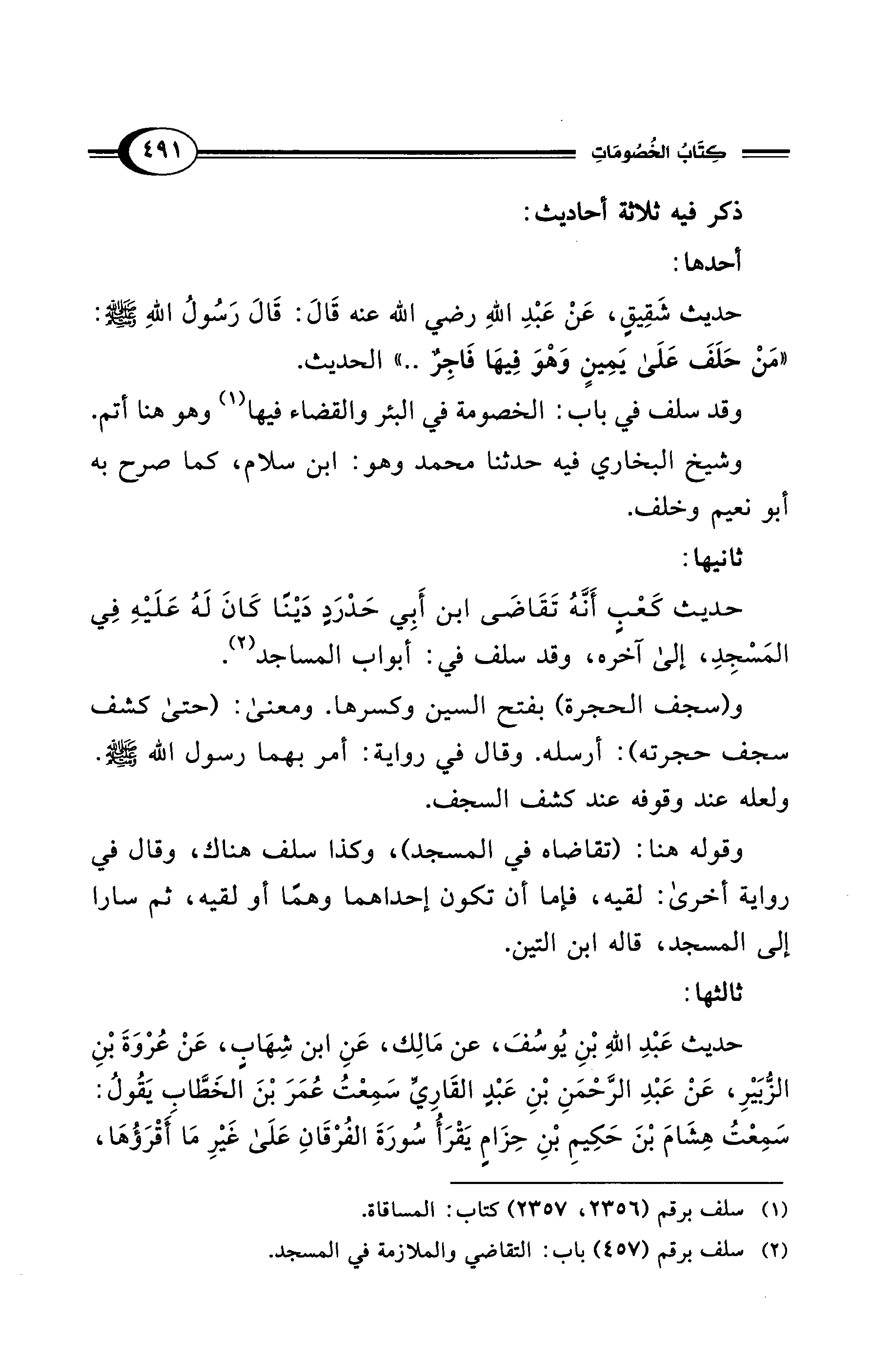 (¬2) سلف برقم (457) باب: التقاضي والملازمة في المسجد.