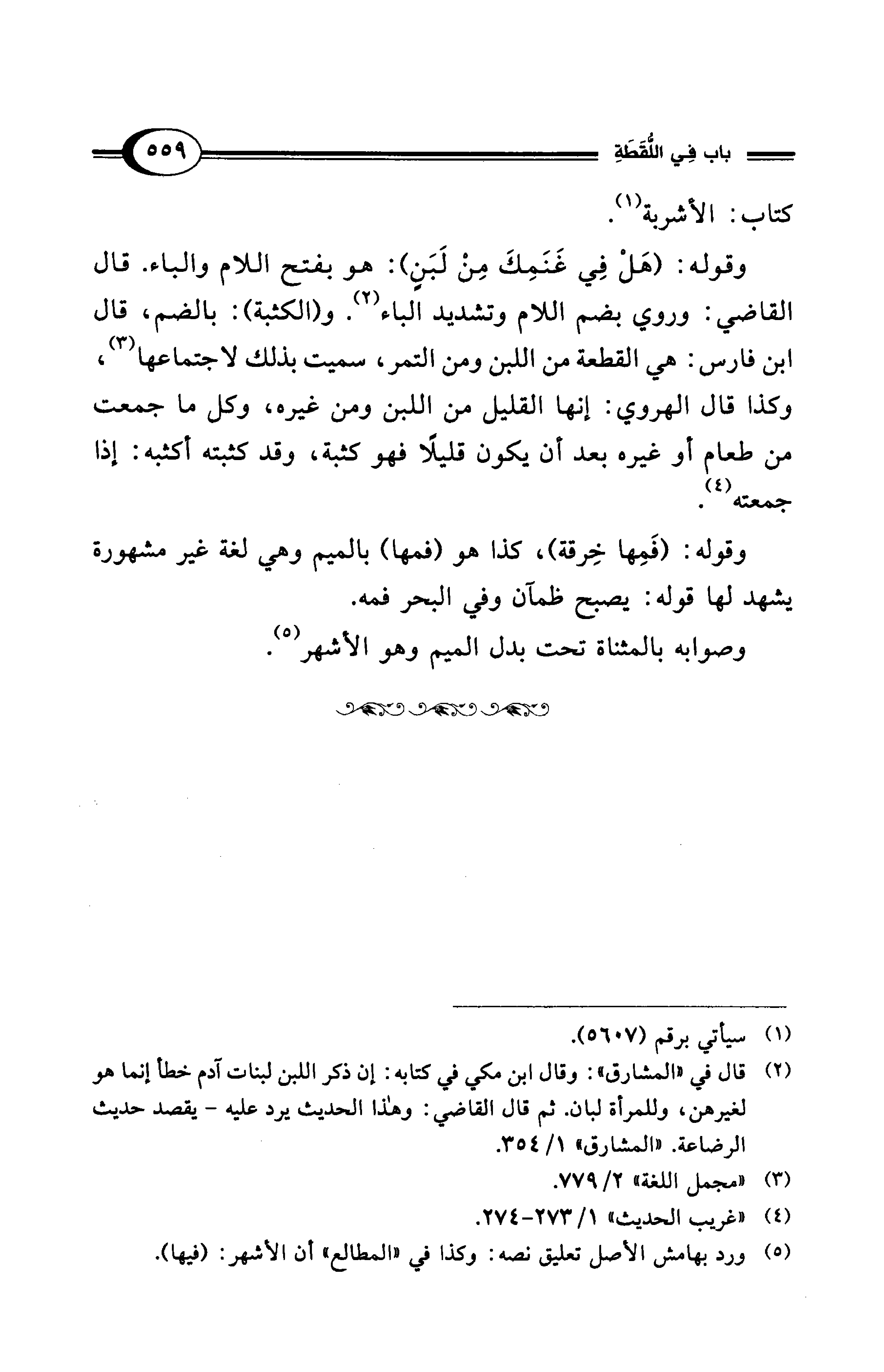 (¬5) ورد بهامش الأصل تعليق نصه: وكذا في "المطالع" أن الأشهر: (فيها).