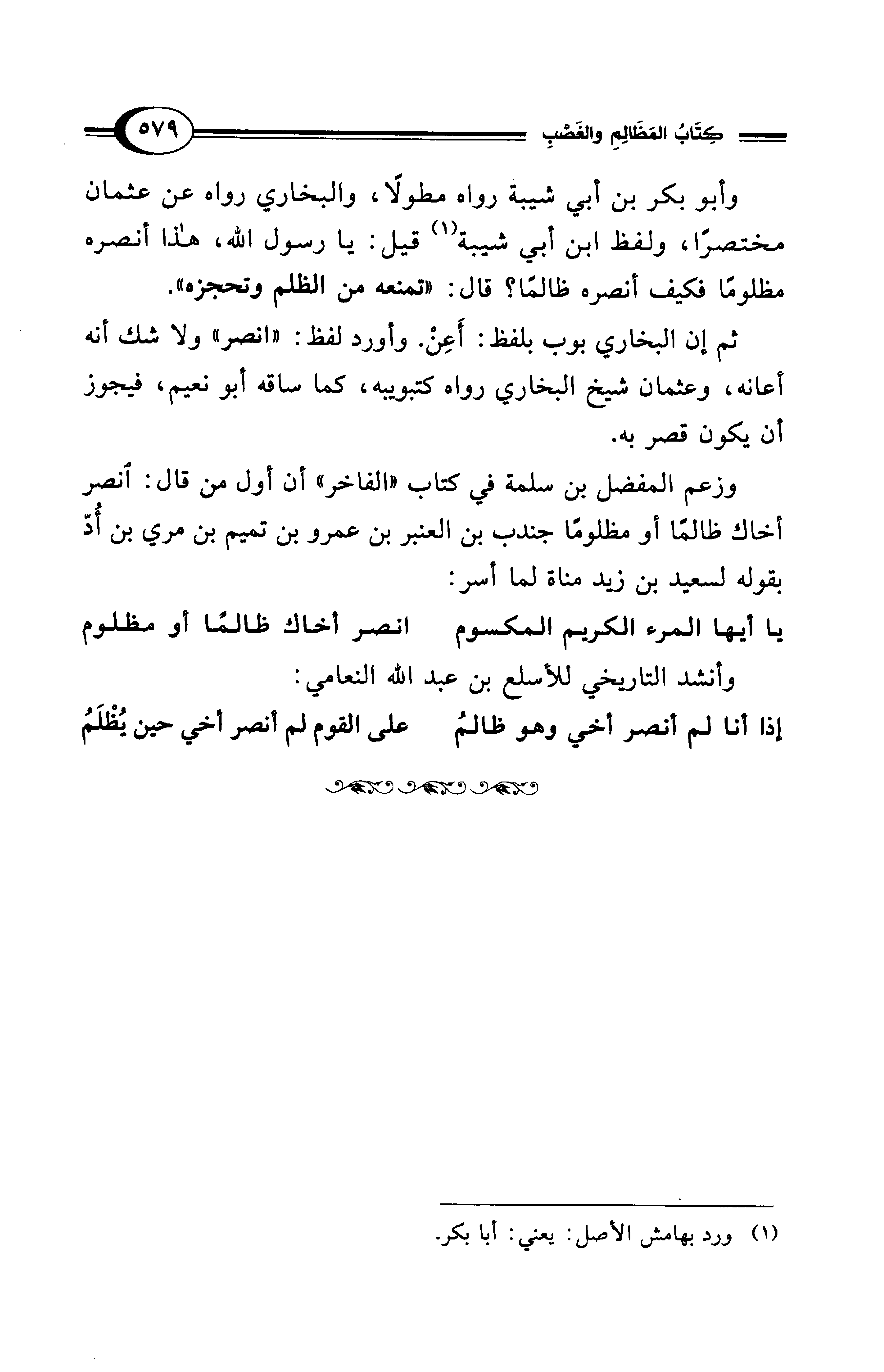 يا أيها المرء الكريم المكسوم ... انصر أخاك ظالمًا أو مظلوم