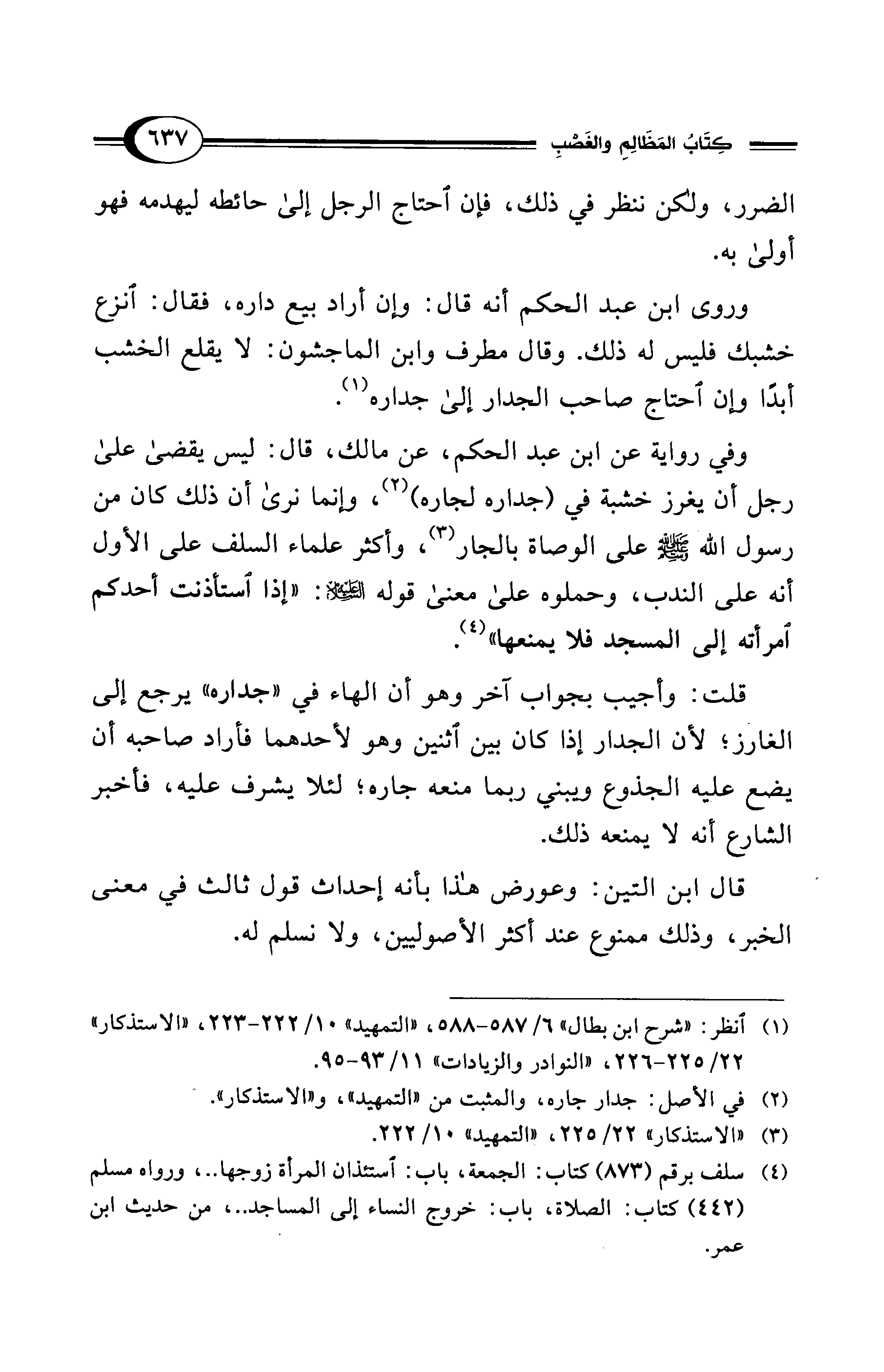 (¬2) في الأصل: جدار جاره، والمثبت من "التمهيد"، و"الاستذكار".