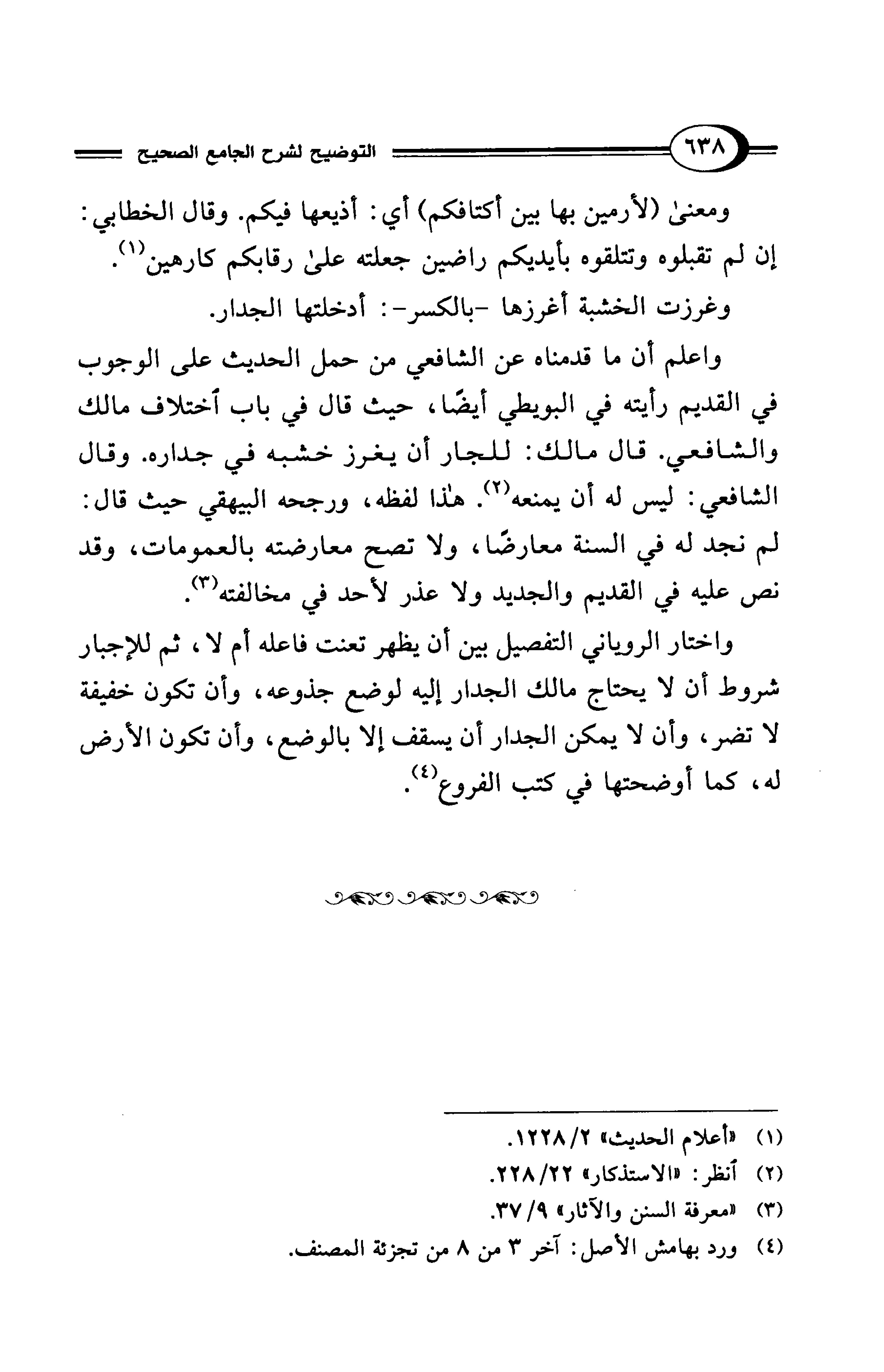 واعلم أن ما قدمناه عن الشافعي من حمل الحديث على الوجوب في القديم رأيته في البويطي أيضًا، حيث قال في باب اختلاف مالك والشافعي. قال مالك: للجار أن يغرز خشبه في جداره. وقال الشافعي: ليس له أن يمنعه (¬2). هذا لفظه، ورجحه البيهقي حيث قال: لم نجد له في السنة معارضًا، ولا تصح معارضته بالعمومات، وقد نص عليه في القديم والجديد ولا عذر لأحد في مخالفته (¬3).