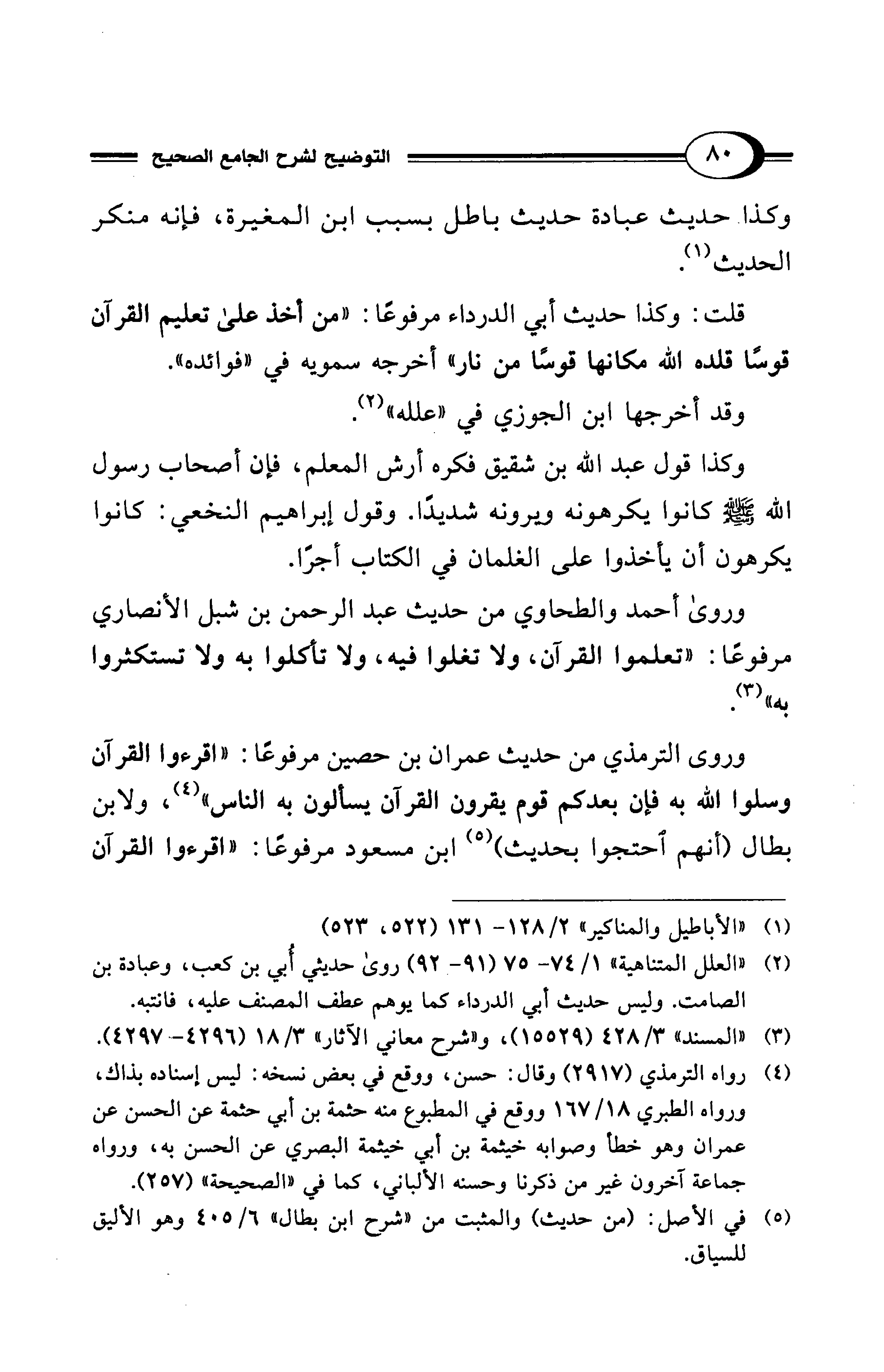 (¬2) "العلل المتناهية" 1/ 74 - 75 (91 - 92) روى حديثي أُبي بن كعب، وعبادة بن الصامت. وليس حديث أبي الدرداء كما يوهم عطف المصنف عليه، فانتبه.