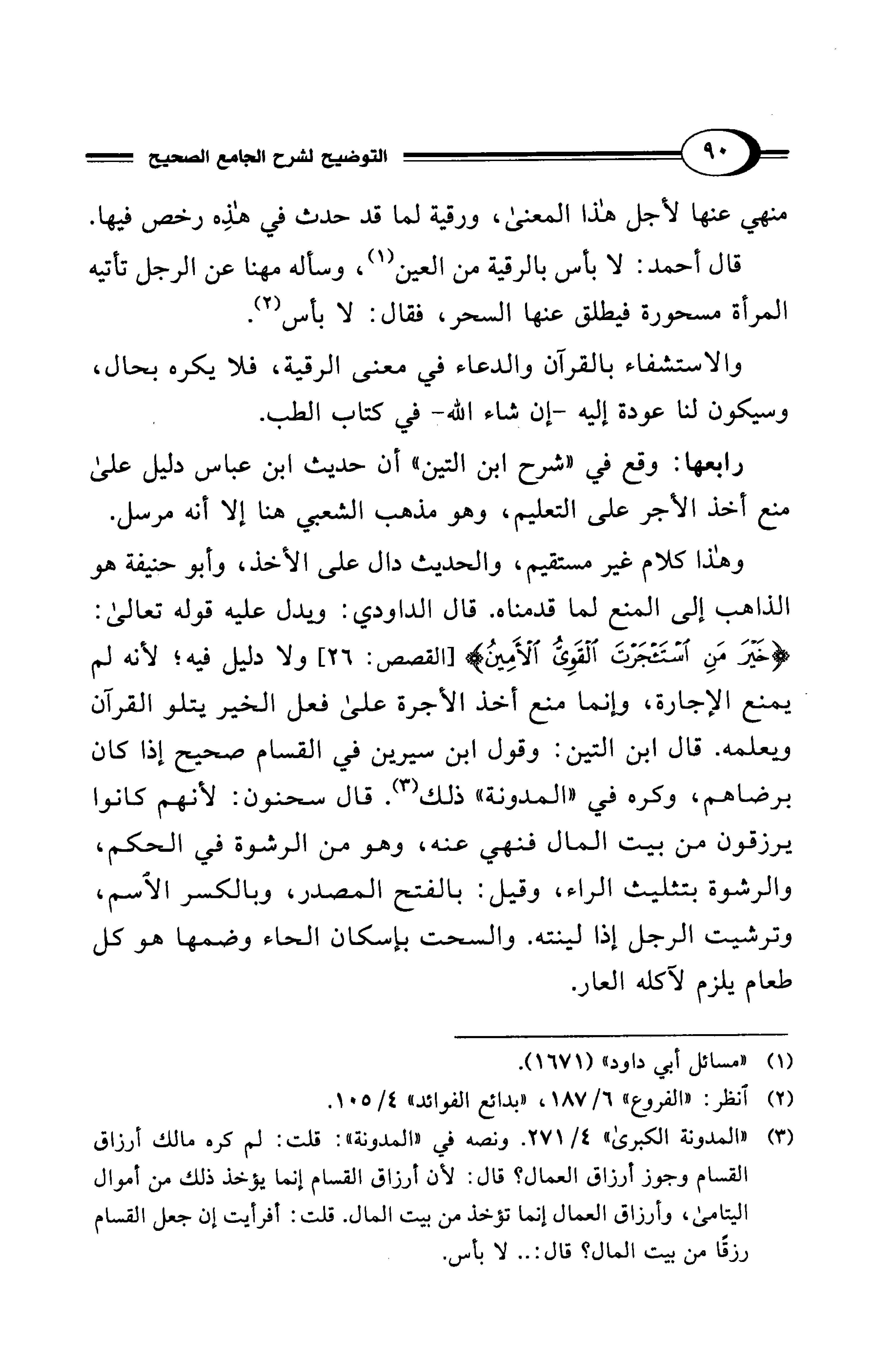 وهذا كلام غير مستقيم، والحديث دال على الأخذ، وأبو حنيفة هو الذاهب إلى المنع لما قدمناه. قال الداودي: ويدل عليه قوله تعالى: {خَيْرَ مَنِ اسْتَأْجَرْتَ القَوِيُّ الأَمِينُ} [القصص: 26] ولا دليل فيه؛ لأنه لم يمنع الإجارة، وإنما منع أخذ الأجرة على فعل الخير يتلو القرآن ويعلمه. قال ابن التين: وقول ابن سيرين في القسام صحيح إذا كان برضاهم، وكره في "المدونة" ذلك (¬3). قال سحنون: لأنهم كانوا يرزقون من بيت المال فنهي عنه، وهو من الرشوة في الحكم، والرشوة بتثليث الراء، وقيل: بالفتح المصدر، وبالكسر الاسم، وترشيت الرجل إذا لينته. والسحت بإسكان الحاء وضمها هو كل