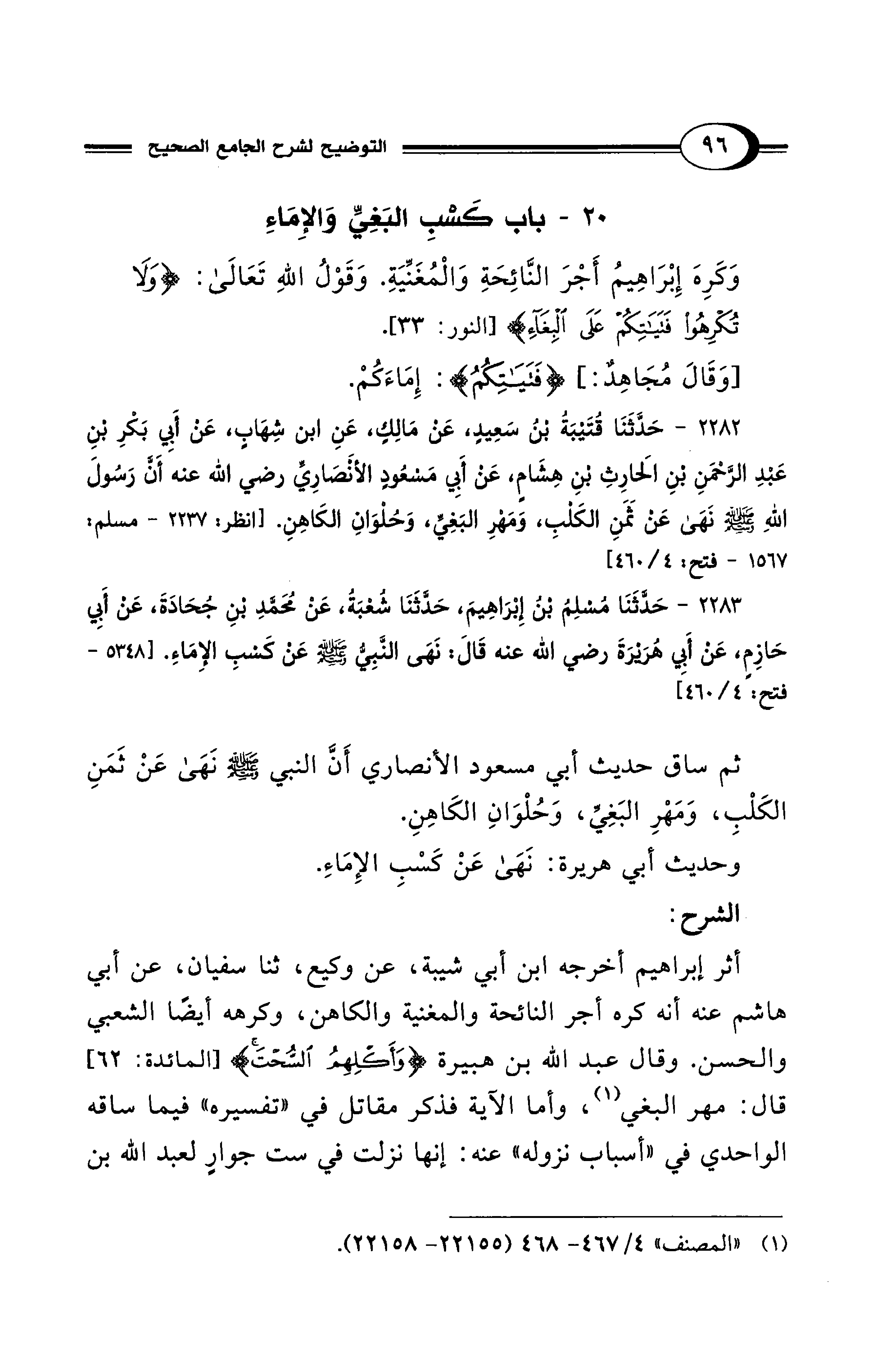 20 - باب كَسْبِ البَغِيِّ وَالإِمَاءِ