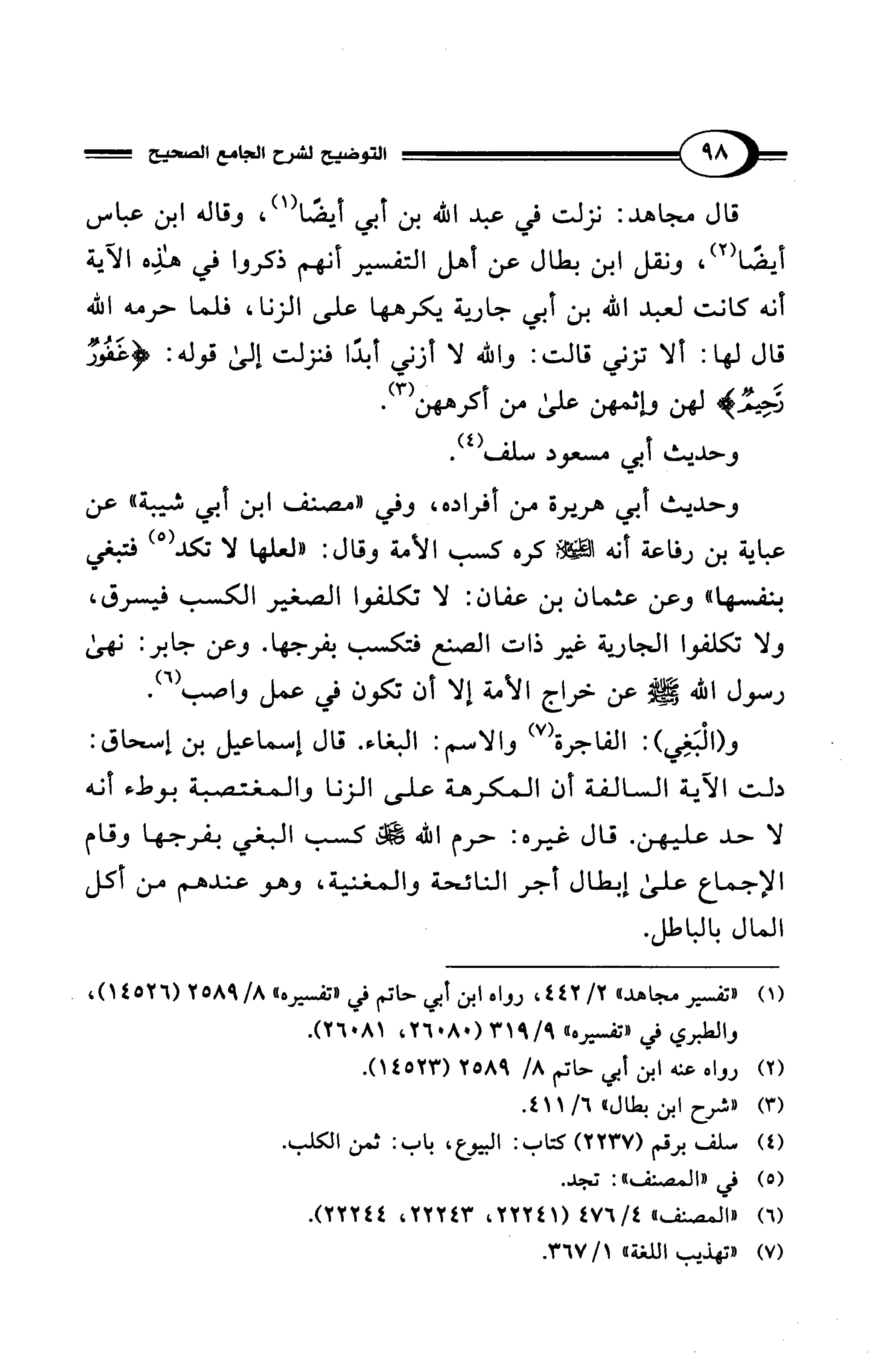 قال مجاهد: نزلت في عبد الله بن أبي أيضًا (¬1)، وقاله ابن عباس أيضًا (¬2)، ونقل ابن بطال عن أهل التفسير أنهم ذكروا في هذِه الآية أنه كانت لعبد الله بن أبي جارية يكرهها على الزنا، فلما حرمه الله قال لها: ألا تزني قالت: والله لا أزني أبدًا فنزلت إلى قوله: {غَفُورٌ رَحِيمٌ} لهن وإثمهن على من أكرههن (¬3).