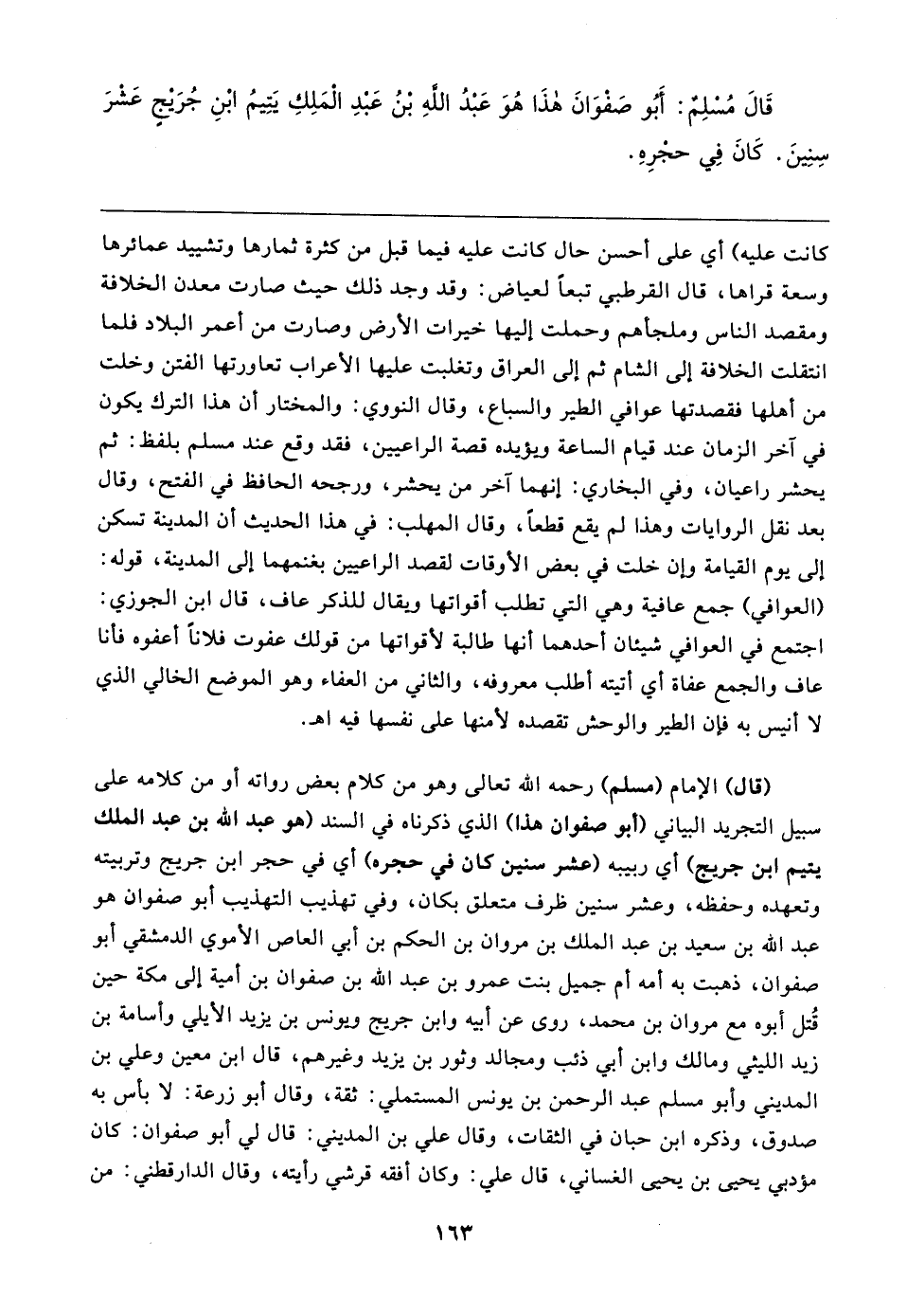 قَال مُسلِمٌ: أَبُو صَفوَانَ هذَا هُوَ عَبْدُ الله بن عَبدِ المَلِكِ يَتِيمُ ابْنِ جُرَيج عَشرَ سِنِينَ. كَانَ فِي حجرِهِ