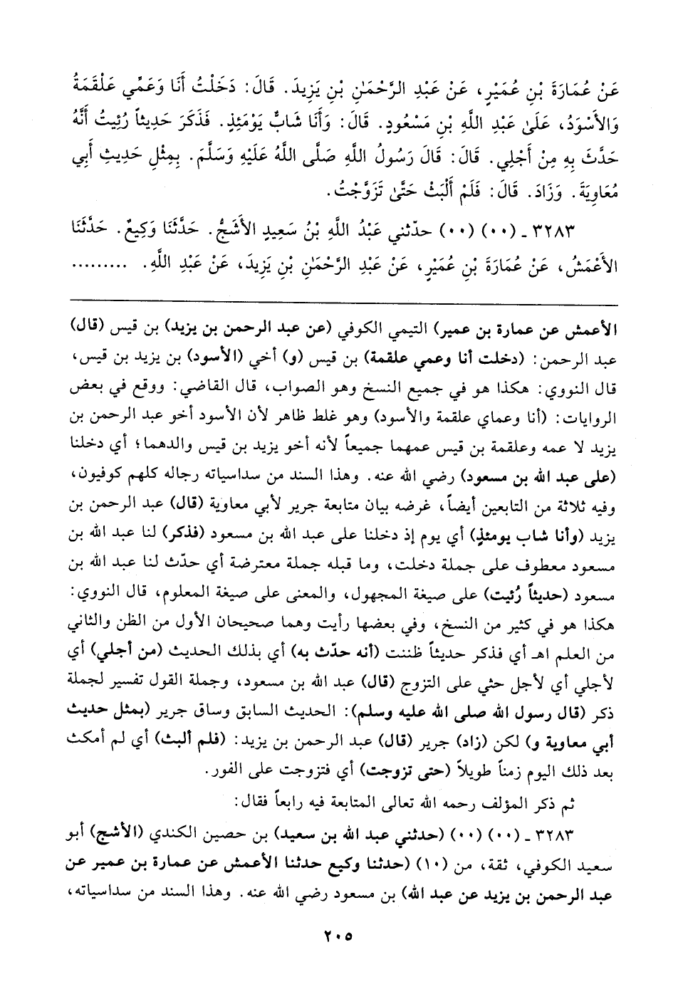 ٣٢٨٣ - (٠٠) (٠٠) (حدثني عبد الله بن سعيد) بن حصين الكندي (الأشج) أبو سعيد الكوفي، ثقة، من (١٠) (حدثنا وكيع حدثنا الأعمش عن عمارة بن عمير عن عبد الرحمن بن يزيد عن عبد الله) بن مسعود رضي الله عنه. وهذا السند من سداسياته،