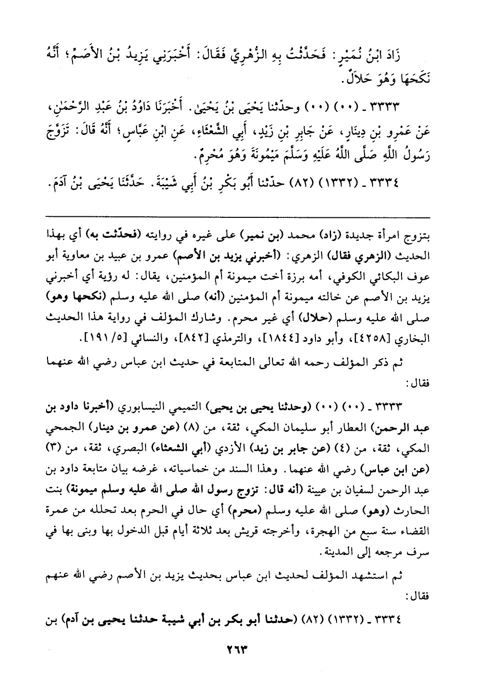 ٣٣٣٣ - (٠٠) (٠٠) وحدَّثنا يَحْيَى بن يَحْيَى. أَخْبَرَنَا دَاوُدُ بْنُ عَبْدِ الرَّحْمَنِ، عَنْ عَمْرِو بْنِ دِينَارٍ، عَنْ جَابِرِ بْنِ زَيدٍ، أَبِي الشَّعْثَاءِ، عَنِ ابْنِ عَبَّاسٍ؛ أَنَّهُ قَال: تَزَوَّجَ رَسُولُ اللهِ صَلَّى اللهُ عَلَيهِ وَسَلَّمَ مَيمُونَةَ وَهُوَ مُحْرِمٌ.