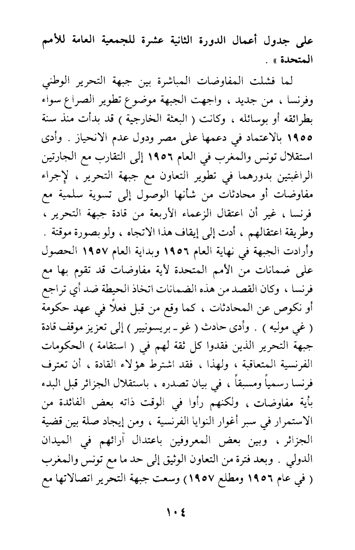 لما فشلت المفاوضات المباشرة بين جبهة التحرير الوطني وفرنسا، من جديد، واجهت الجبهة موضوع تطوير الصراع سواء بطرائقه أو بوسائله، وكانت (البعثة الخارجية) قد بدأت منذ سنة 1955 بالاعتماد في دعمها على مصر ودول عدم الانحياز. وأدى استقلال تونس والمغرب في العام 1956 إلى التقارب مع الجارتين الراغبتين بدورهما في تطوير التعاون مع جبهة التحرير، لإجراء مفاوضات أو محادثات من شأنها الوصول إلى تسوية سلمية مع فرسا، غير أن اعتقال الزعماء الأربعة من قادة جبهة التحرير، وطريقة اعتقالهم، أدت إلى إيقاف هذا الاتجاه، ولو بصورة موقتة. وأرادت الجبهة في نهاية العام 1956 وبداية العام 1957 الحصول على ضمانات من الأمم المتحدة لأية مفاوضات قد تقوم بها مع فرنسا، وكان القصد من هذه الضمانات اتخاذ الحيطة ضد أي تراجع أو نكوص عن المحادثات، كما وقع من قبل فعلا في عهد حكومة (غي موليه). وأدى حادث (غو - بريسونيير) إلى تعزيز موقف قادة جبهة التحرير الذين فقدوا كل ثقة لهم في (استقامة) الحكومات الفرنسية المتعاقبة، ولهذا، فقد اشترط هؤلاء القادة، أن تعترف فرنسا رسميا ومسبقا، في بيان تصدره، باستقلال الجزائر قبل البدء بأية مفاوضات، ولكنهم رأوا في الوقت ذاته بعض الفائدة من الاستمرار في سبر أغوار النوايا الفرنسية، ومن إيجاد صلة بين قضية الجزائر، وبين بعض المعروفين باعتدال آرائهم في الميدان الدولي. وبعد فترة من التعاون الوثيق إلى حد ما مع تونس والمغرب (في عام 1956 ومطلع 1957) وسعت جبهة التحرير اتصالاتها مع