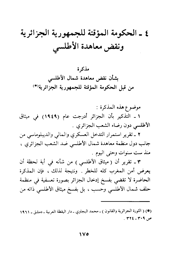 4 - الحكومة المؤقتة للجمهورية الجزائرية ونقض معاهدة الأطلسي مذكرة