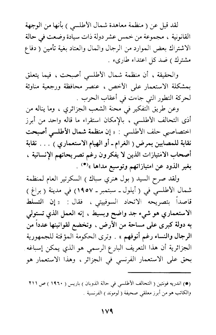 (*) اندريه فونتين (التحالف الأطلسي في حالة الذوبان) باريس (1960) ص 211 والكاتب هو من أبرز معلقي صحيفة (لوموند) الفرنسية.