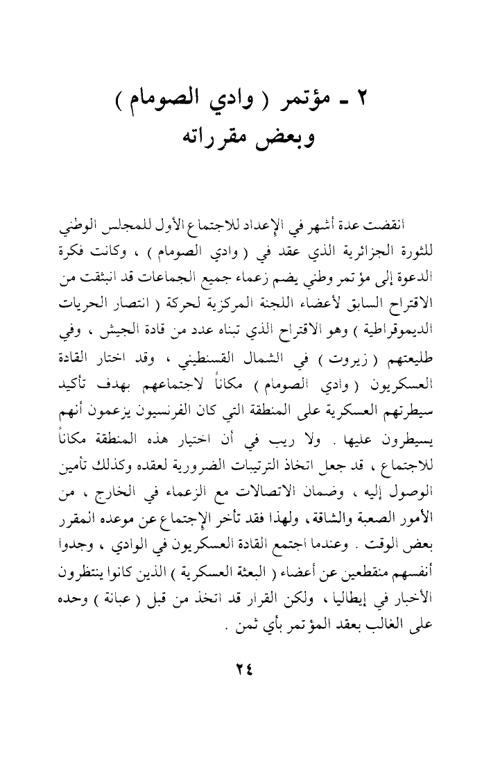 2 - مؤتمر (وادي الصومام) وبعض مقرراته