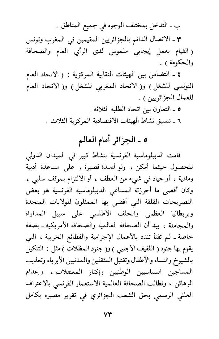 3 - الاتصال الدائم بالجزائريين المقيمين في المغرب وتونس (القيام بعمل إيجابي ملموس لدى الرأي العام والصحافة.