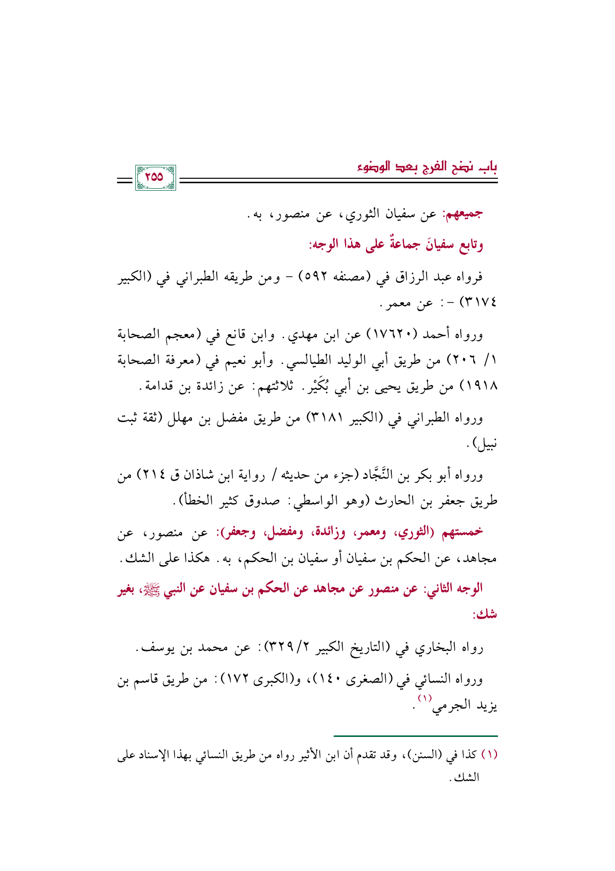 خمستهم (الثوري، ومعمر، وزائدة، ومفضل، وجعفر): عن منصور، عن مجاهد، عن الحكم بن سفيان أو سفيان بن الحكم، به. هكذا على الشك.