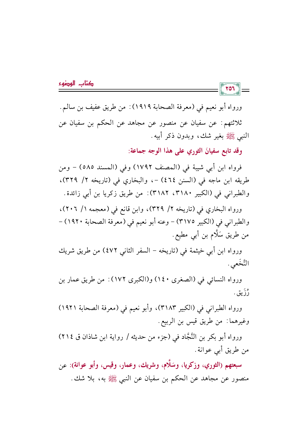 سبعتهم (الثوري، وزكريا، وسَلَّام، وشريك، وعمار، وقيس، وأبو عوانة): عن منصور عن مجاهد عن الحكم بن سفيان عن النبي صلى الله عليه وسلم به، بلا شك.