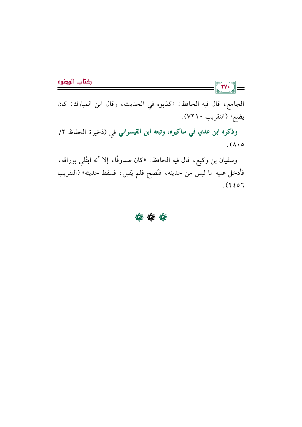 وسفيان بن وكيع، قال فيه الحافظ: "كان صدوقًا، إلا أنه ابتُلي بوراقه، فأدخل عليه ما ليس من حديثه، فنُصح فلم يَقبل، فسقط حديثه" (التقريب ٢٤٥٦).