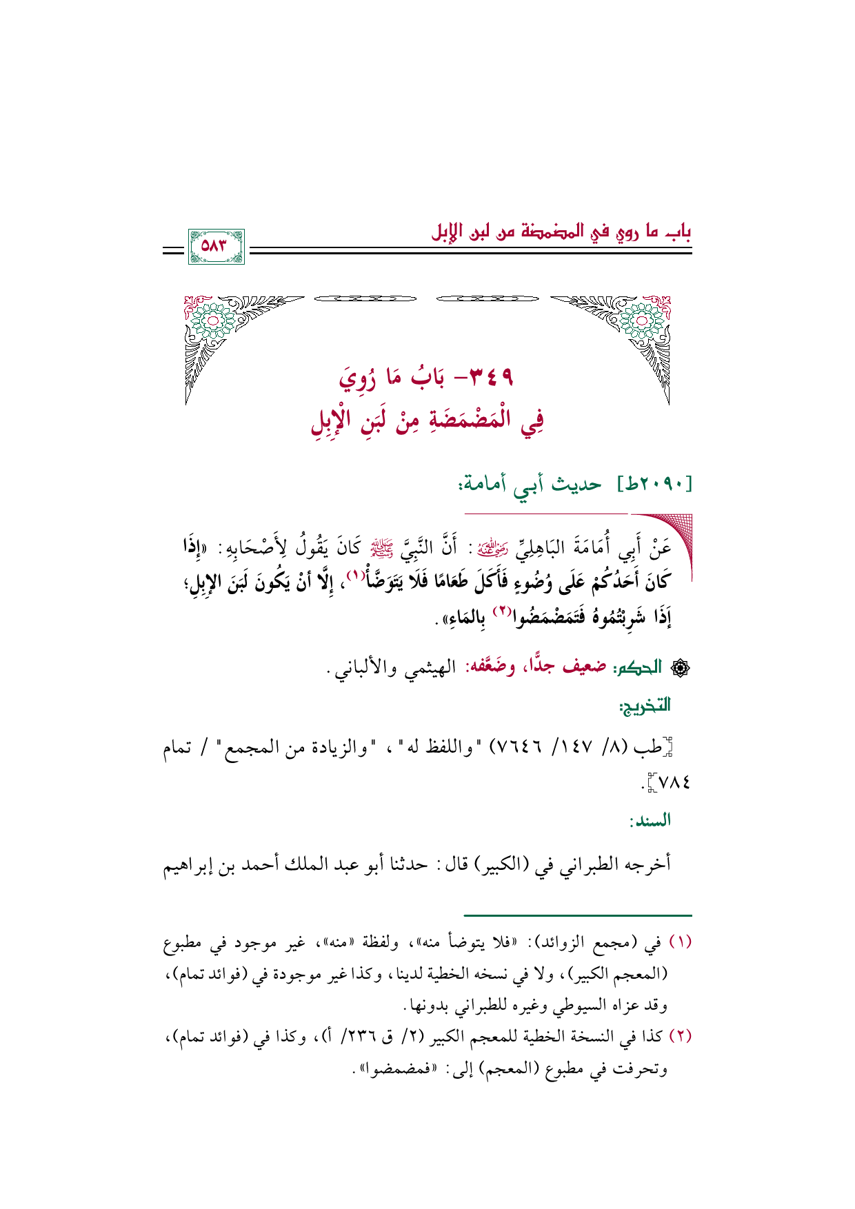 (¬١) في (مجمع الزوائد): "فلا يتوضأ منه"، ولفظة "منه"، غير موجود في مطبوع (المعجم الكبير)، ولا في نسخه الخطية لدينا، وكذا غير موجودة في (فوائد تمام)، وقد عزاه السيوطي وغيره للطبراني بدونها.