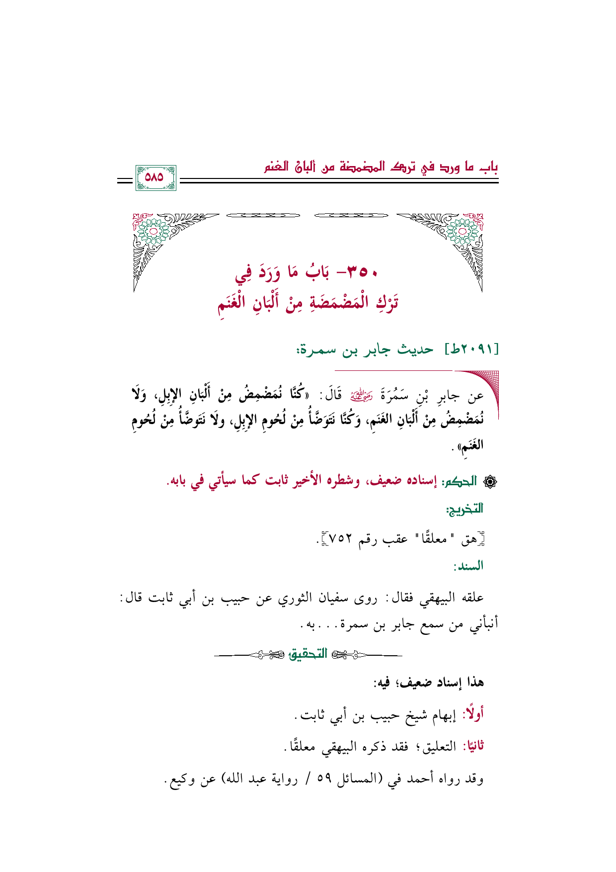 علقه البيهقي فقال: روى سفيان الثوري عن حبيب بن أبي ثابت قال: أنبأني من سمع جابر بن سمرة ... به.