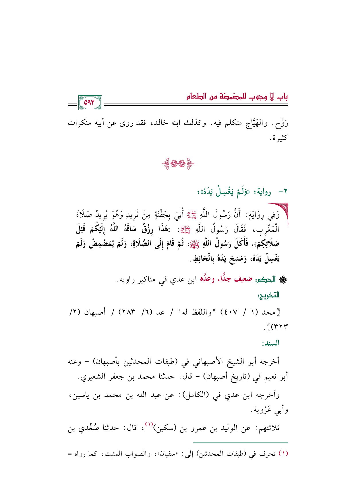 (¬١) تحرف في (طبقات المحدثين) إلى: ((سفيان))، والصواب المثبت، كما رواه أبو نعيم عن أبي الشيخ، وكذا عند ابن عدي، وكذا في مصادر ترجمته.