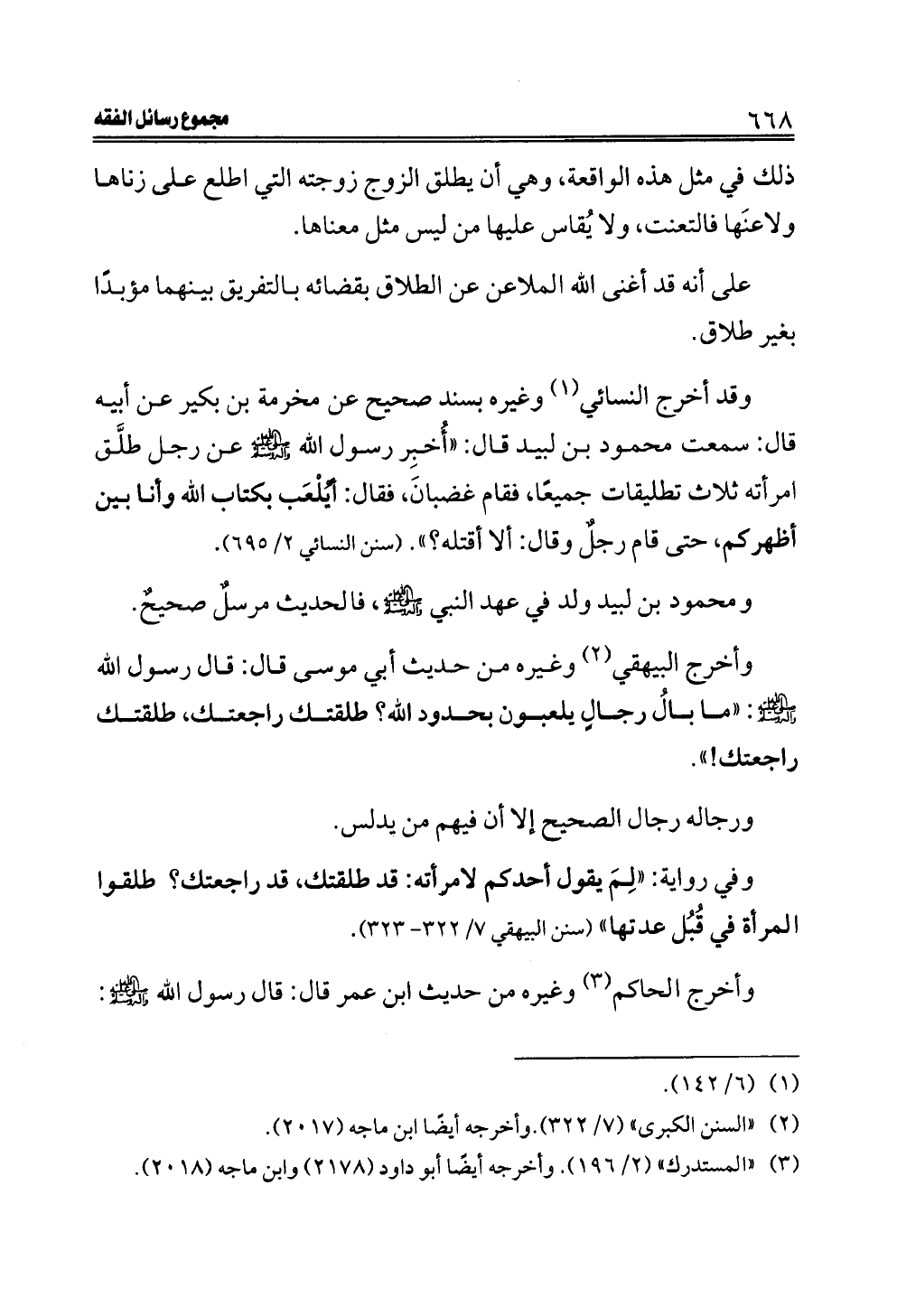 وفي رواية: "لِمَ يقول أحدكم لامرأته: قد طلقتك، قد راجعتك؟ طلقوا المرأة في قُبُل عدتها" (سنن البيهقي ٧/ ٣٢٢ - ٣٢٣).