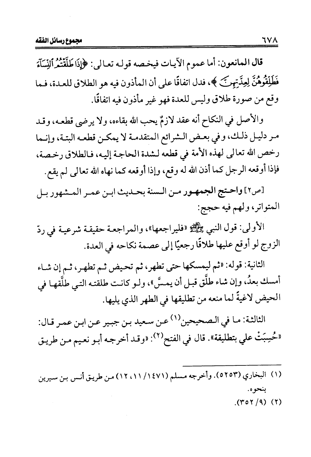 [ص ٢] واحتج الجمهور من السنة بحديث ابن عمر المشهور بل المتواتر، ولهم فيه حجج: