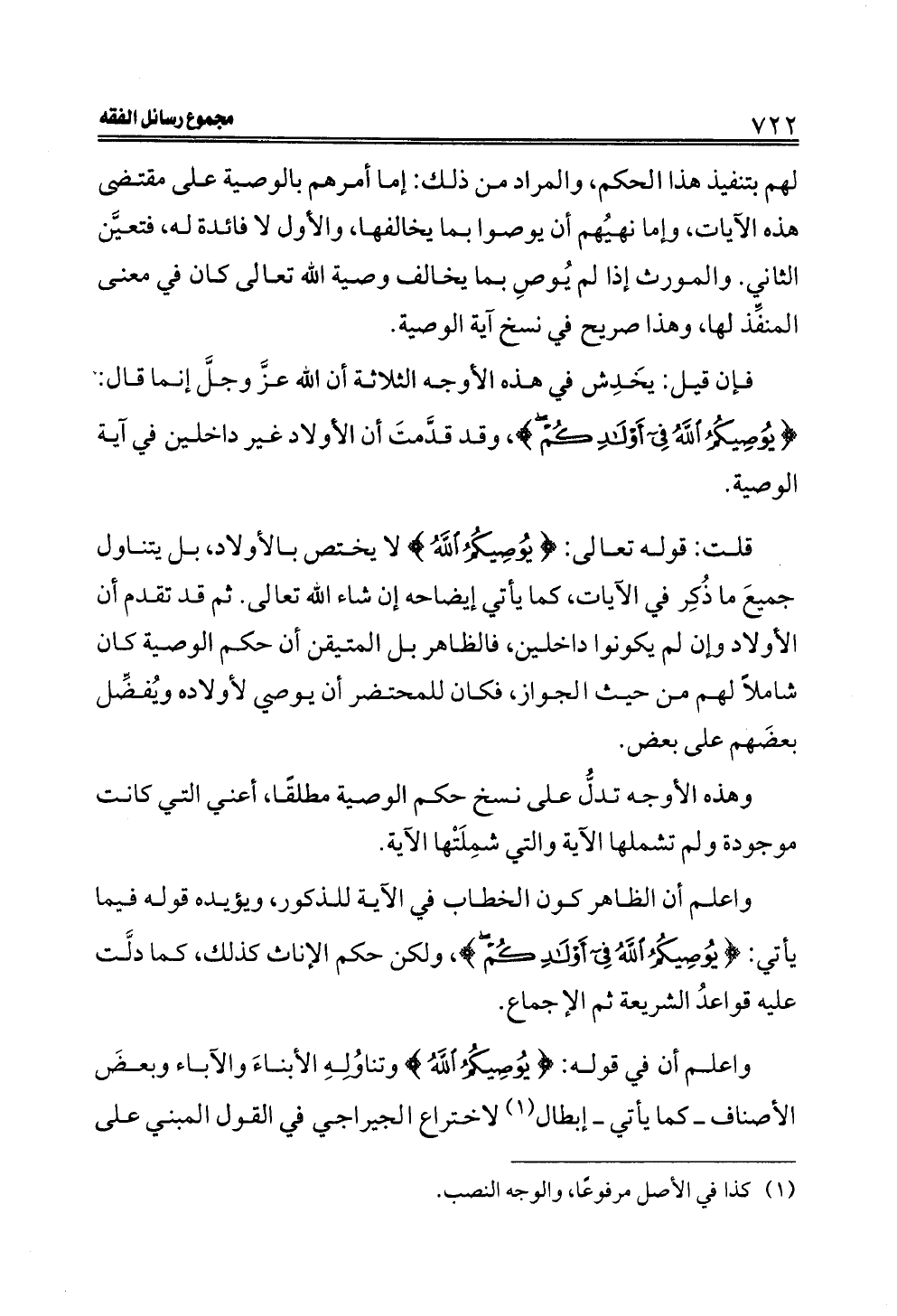 وهذه الأوجه تدلُّ على نسخ حكم الوصية مطلقًا، أعني التي كانت موجودة ولم تشملها الآية والتي شمِلَتْها الآية.
