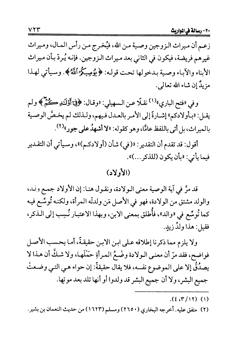 وفي "فتح الباري" (¬١) نقلًا عن السهيلي: "وقال: {فِي أَوْلَادِكُمْ} ولم يقل: "بأولادكم" إشارةً إلى الأمر بالعدل فيهم، ولذلك لم يخصَّ الوصية بالميراث، بل أتى باللفظ عامًّا، وهو كقوله: "لا أشهدُ على جور" (¬٢).