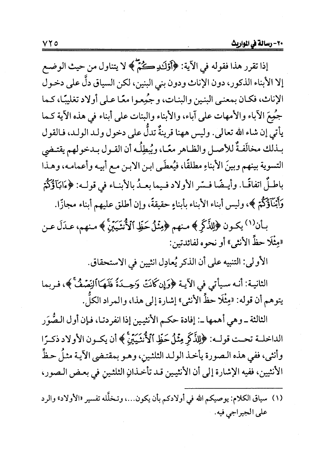 (¬١) سياق الكلام: يوصيكم الله في أولادكم بأن يكون ... ، وتخلَّله تفسير "الأولاد" والرد على الجيراجي فيه.