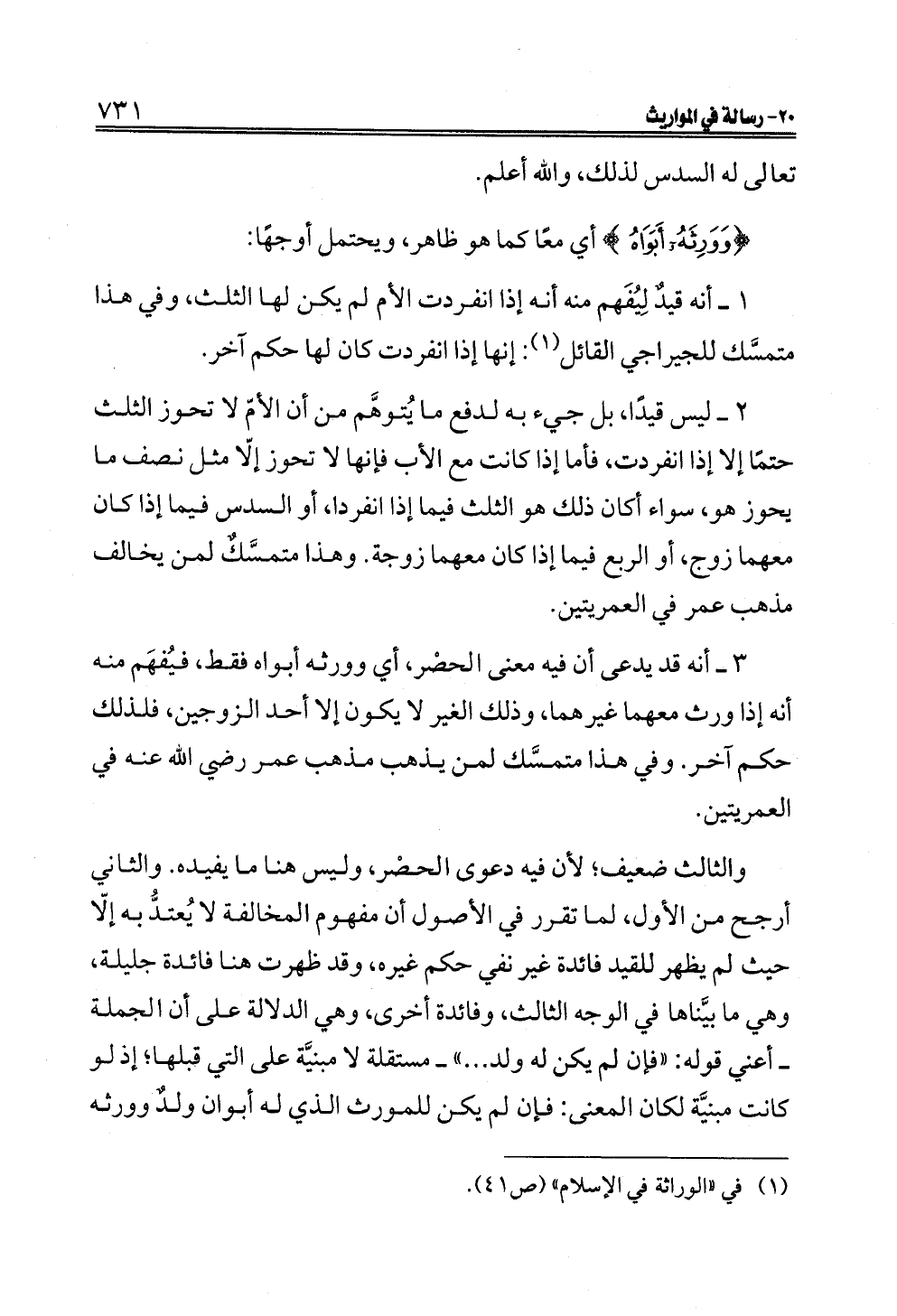 (¬١) في "الوراثة في الإسلام" (ص ٤١).