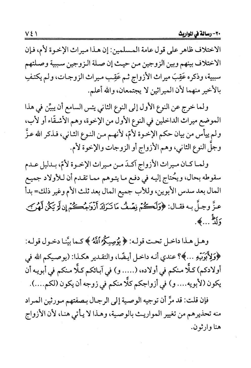 ولما خرج عن النوع الأول إلى النوع الثاني يئس السامع أن يبيِّن في هذا الموضع ميراث الداخلين في النوع الأول من الإخوة، وهم الأشقّاء أو لأب، ولم ييأس من بيان حكم الإخوة لأمّ، لأنهم من النوع الثاني، فذكر الله عزَّ وجلَّ النوع الثاني، وهم الأزواج أو الزوجات والإخوة لأم.