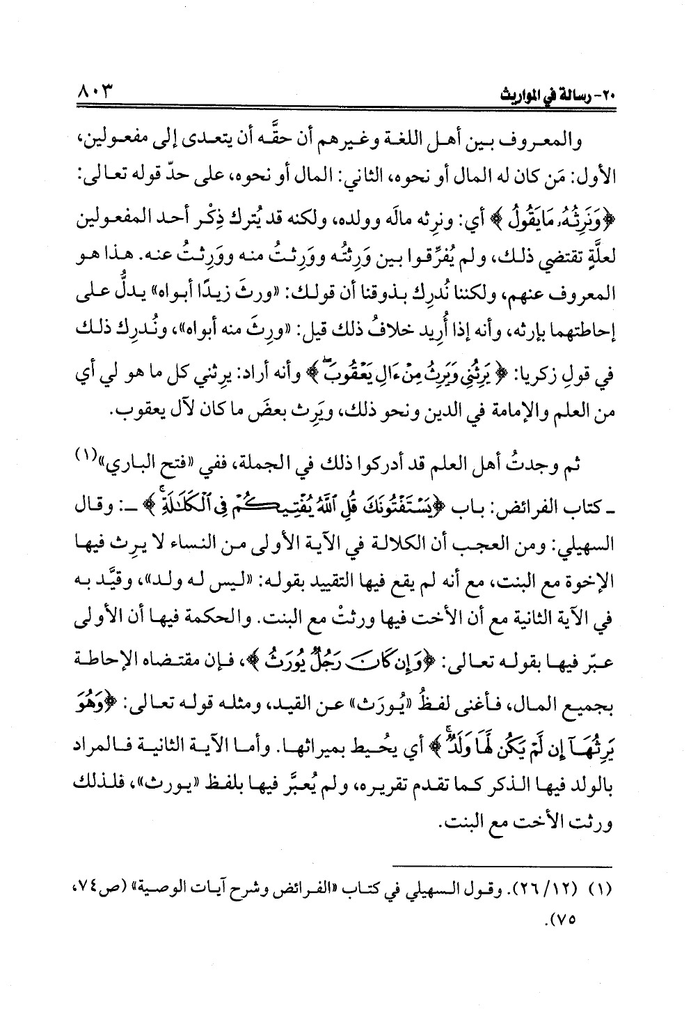 (¬١) (١٢/ ٢٦). وقول السهيلي في كتاب "الفرائض وشرح آيات الوصية" (ص ٧٤، ٧٥).