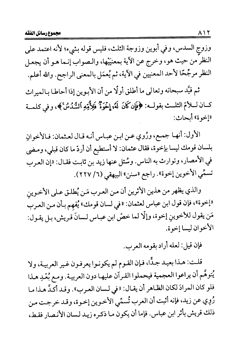 والذي يظهر من هذين الأثرين أن من العرب مَن يُطلق على الأخوينِ "إخوة"، فإن قول ابن عباس لعثمان: "في لسان قومك" يُفهِم بأن من العرب مَن يقول للأخوينِ إخوة، وإلّا لما خصّ ابن عباس لسانَ قريش، بل يقول: الأخوان ليسا إخوة.