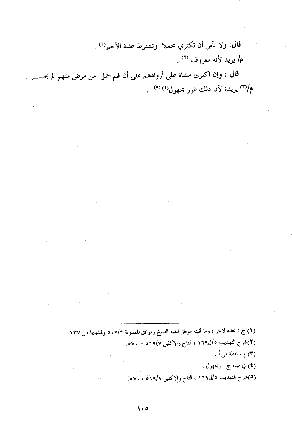قال: وإن اكترى مشاة على أزوادهم على أن لهم حمل من مرض منهم لم يجز. م/ يريد؛ لأن ذلك غرر مجهول.